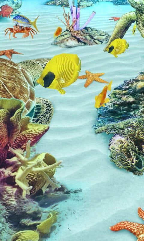 - Animasyonlu etkileşimli balıklar, kaplumbağalar ve küçük yengeçler