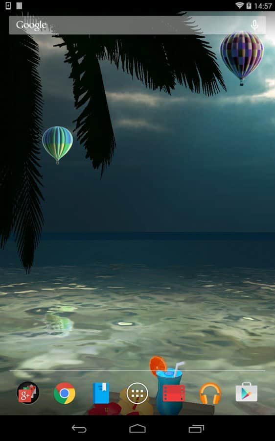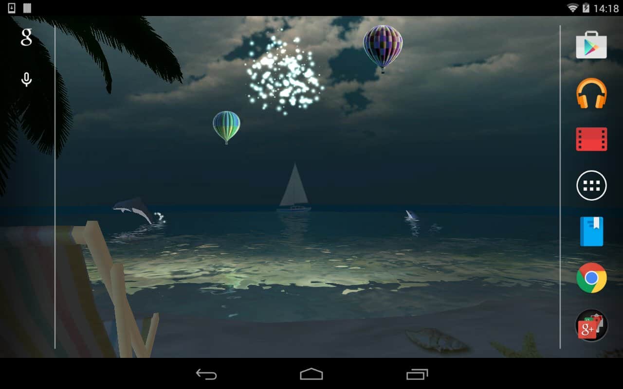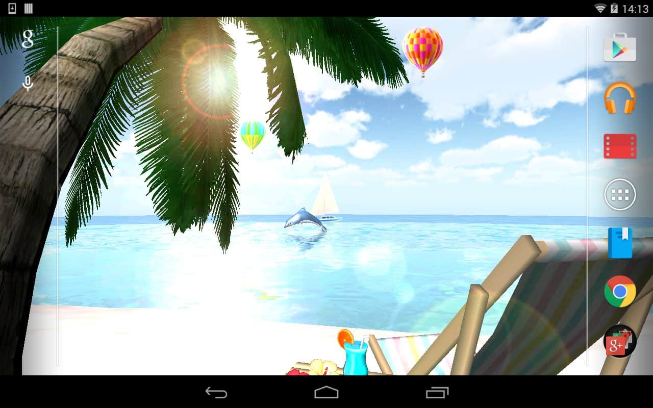 OCEAN BEACH 3D Canlı Duvar Kağıdı – soğuk kış aylarında sizi ısıtacak büyüleyici canlı duvar kağıtları. Bu duvar kağıtlarını telefonunuza kurduğunuzda, ekranınızda bir şezlong ile kumlu bir plaj, sıcak suda oynayan yunuslar, dev yatlar, sıcak hava balonları ve havai fişekler göreceksiniz. Rahatlama ve tatil atmosferinin tadını çıkarın ve sizi bekleyen gelecek tatil hakkında hayal kurun. Duvar kağıdı, çeşitli ayarlar, gündüz ve gece geçişleri, tüm ek efektlerin ve nesnelerin eklenmesi veya kaldırılması ile sizi memnun edecek. Şeffaf suya hayran kalın, palmiyenin gölgesinin tadını çıkarın ve yapraklarının hışırtısını dinleyin.
