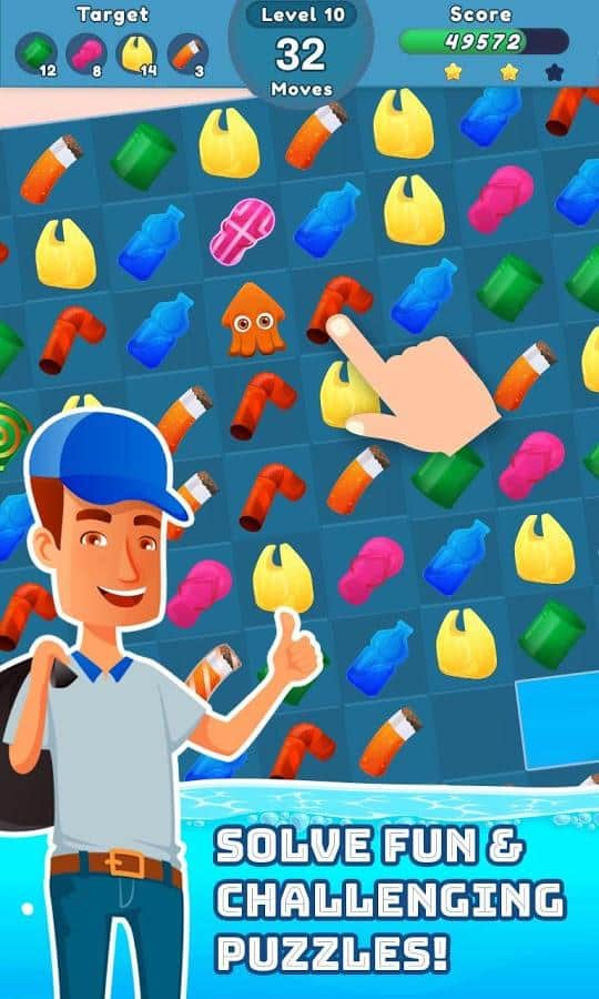 Okyanus Temizliği: Okyanus Temizliği için 3'lü Eşleştirme Oyunu – okyanusu kirlilikten kurtaracağınız eğlenceli bir üçlü eşleştirme oyunu. Bu oyunda, bir Sivil Toplum Kuruluşuna okyanus tabanını kirlilikten temizlemesine yardımcı olacak ve bu soruna dair insanların farkındalığını artıracaksınız. Çeşitli çöplerden sıralar oluşturun ve Bobby ile arkadaşlarının sayısız bulmacayı ve görevleri çözmesine yardımcı olun. Okyanusta yüzen plastik çöpleri yok edin ve geri dönüştürün. Okyanusu kirlilikten temizleyin ve Kraken'in sizi çalışmaya zorlayan insanlarla iletişime geçmesine izin vermeyin.
