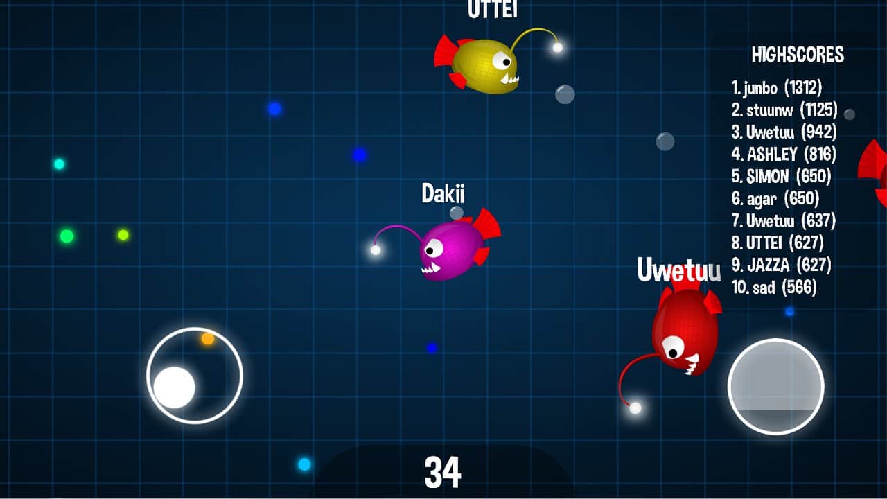 Ocean.io Slap Online - dişli balığınızı kontrol altına alın ve onu oyunun tehlikeli dünyasında yönlendirin. Bu oyunda, okyanusun dibinde hareket eden ve renkli küreleri yiyen küçük bir balığı yöneteceksiniz. Bu oyundaki ana görev yours, sizden daha küçük balıkları yemek ve aynı zamanda kendi boyutunuzu artırmaktır. Maceranıza hemen başlayın ve bu oyunda mümkün olduğunca uzun süre dayanmayı hedefleyin, büyük yırtıcılardan kaçının. Balıkları yiyin ve bu oyundaki en büyük boyutlara ulaşın. Arkadaşlarınızla ve dünyanın dört bir yanındaki diğer oyuncularla oynayın, liderlik tablolarında ve başarılarınızda daha da yükseğe çıkın.