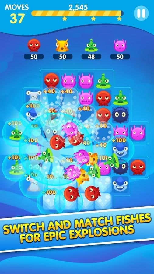 OkyanusPartisi – Android için üçlü eşleştirme türünde heyecan verici bir oyun, burada deniz dibine dalacaksınız. Bu oyunda ana göreviniz, güzel ve renkli balıklardan oluşan sıralar oluşturmak ve bunları oyun alanından kaldırmak olacak. Parmaklarınızın çevikliğini ve zekanızı gösterin ve üç veya daha fazla aynı balığı bir araya getirerek yer değiştirin. Mümkün olan en uzun balık sıralarını oluşturmaya çalışın ve harika ödüller kazanın. Güzel ve manzaralı lokasyonlarda seyahat edin ve seviyeleri daha hızlı geçmek için güçlendirmeleri kullanın. Zor bulmacaları çözün ve oyunun 200 seviyesini geçin.