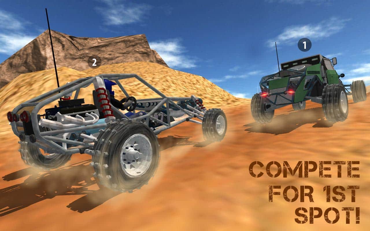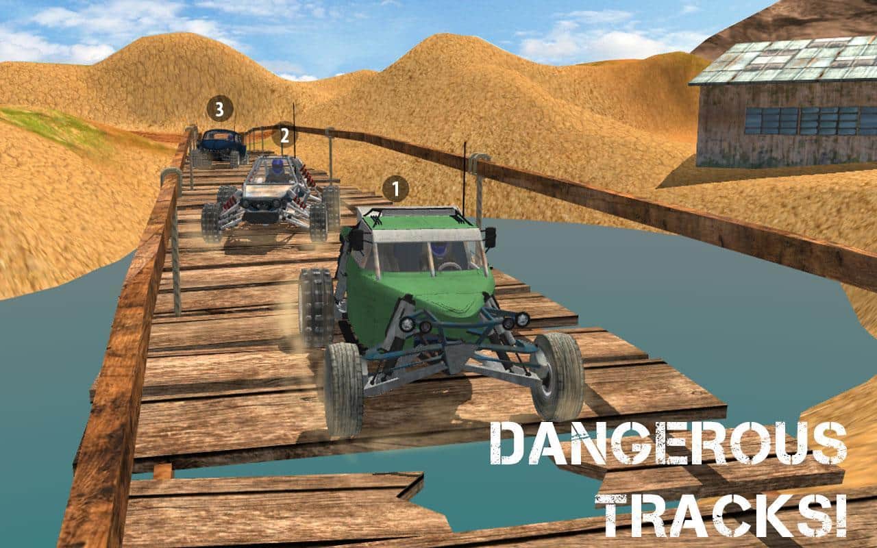 Off-Road Buggy Ralli Yarışı – bu Android oyununda ralli yarışlarına katılın. Bu oyunda, buggyle araziyi geçecek ve çeşitli görevler yerine getireceksiniz. Aşırı yarışlara hazırlanın ve buggynizi maksimum hızlara çıkararak rakiplerinizi geride bırakın. Engebeli arazide çeşitli numaralar yaparak, dik yamaçları aşarak, yolda bulunan engelleri geçerek ve kıvrımlı tünellerden geçerek sürün. Elinizden geleni gösterin ve bu parkurda en iyi süreyi elde ederek bitişe ilk gelen olun. Değerli ödüller kazanın ve yeni buggylere erişim açın.