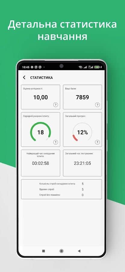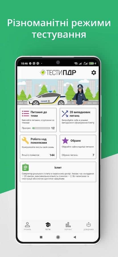 Ukrayna Resmi Trafik Testleri - Sınav için gerekli kategoriyi seçin ve sınavları geçmek veya Ukrayna'daki trafik kuralları hakkında öğrendiğiniz bilgileri tazelemek için tüm olası soruları öğrenin. Uygulamada 1000'den fazla test, çeşitli sorular ve görselleştirme ile bulmacalar toplanmıştır, bu nedenle bilmediğiniz veya hatırlamadığınız şeyleri kesinlikle bulacaksınız. Öğreniminizin nasıl gerçekleşeceğini kendiniz seçin: sınav soruları veya kendi tercihinizle belirli konular üzerinden. Yanlış cevap verseniz bile, yaptığınız hataları görme şansınız her zaman vardır.