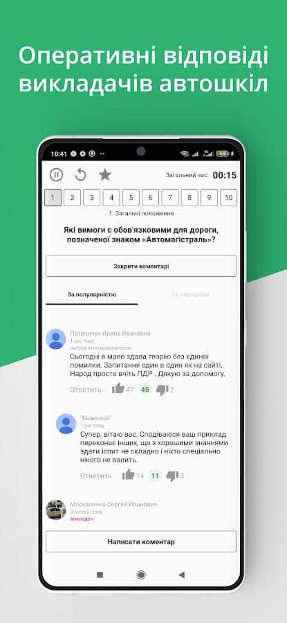 Yorumlar ile Офiцiйнi Тести ПДР üzerinde Android