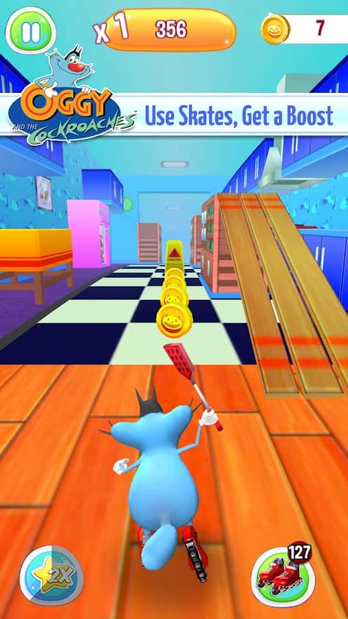 Oggy 3D Koşusu - renkli grafikleri ve hikaye akışıyla eğlenceli ve dinamik bir 3D koşu oyunudur. Bu nedenle, siz sevimli kahraman Oggy'nin rolünü üstleneceksiniz; Oggy, sürekli olarak kurnaz hamam böcekleri tarafından rahatsız edilmekte ve onlardan yiyecek çalınmaktadır. İyi niyetine rağmen, kahraman aç kalmayı düşünmüyor ve böceklerin peşine düşüyor; siz de ona bu konuda yardım edeceksiniz. Elinize geçen her şeyle silahlanarak, yiyecekleri geri almanız ve bu arada para ve çeşitli bonuslar toplamanız gerekiyor.