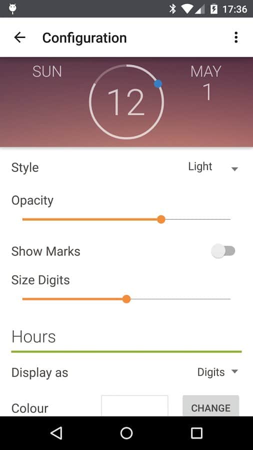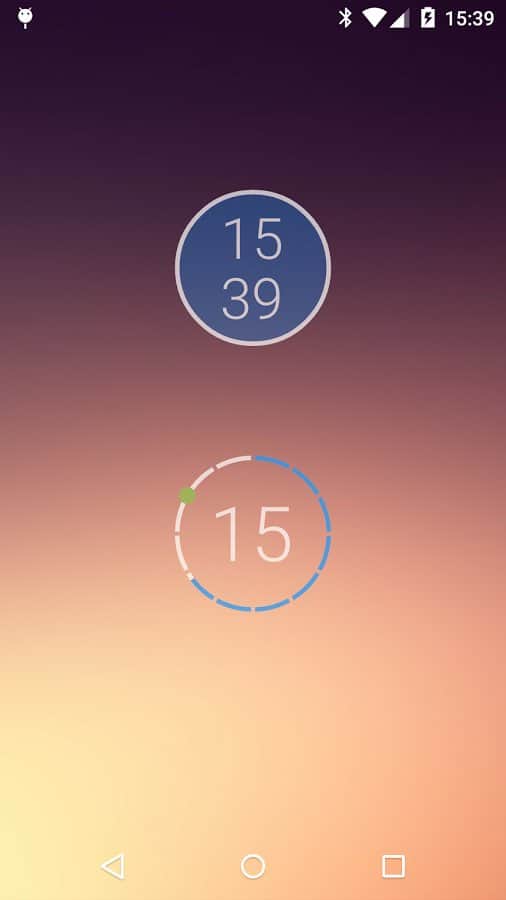 Sunulan widget, alışılmadık saatleri sevenler için tasarlandı. Bu durumda, kullanıcı, dijital (aslında, zamanın dijital gösterimi) ve analog (kadranda hareket) saatlerin özelliklerini bir arada bulunduran minimalist bir çemberin tadını çıkaracak. Uygulamada saydamlığı ayarlamak, uygun bir yazı tipi seçmek, ayrı elemanların renklerini belirlemek, zaman gösterim modunu seçmek, istenen efektleri eklemek ve tarih gösterim modunu açmak mümkün. Ayrıca, widget'a dokunarak gerekli komut çağrılabilir ve alt alanda - ayar menüsü bulunur.
