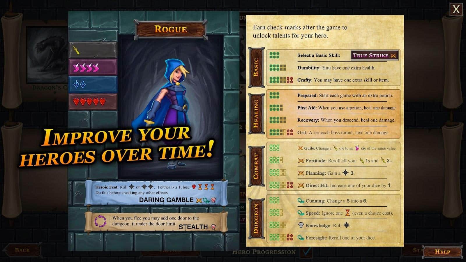 One Deck Dungeon - android için bir masa oyunu, burada zindanları keşfedecek ve düşmanlarla savaşacaksınız. Oyundaki beş kahramandan birini seçin ve yolculuğunuza başlayın. Büyücü, savaşçı, hırsız, paladin veya okçudan biri olabilirsiniz. Bu oyun toplamda 15 dakika sürecek ve bu süre içinde çeşitli yeteneklere veya olanaklara sahip kartlar toplamaya çalışmalı ve sonraki oyunlarınızda işinize yarayacak deneyimi artırmalısınız. Ejderha mağaralarını, yediğin buzulunu, hidra resifini ve lich'in mezarlarını ile minotaur kalıntılarını keşfedin. Kahramanınızı geliştirin ve inanılmaz sonuçlar elde edin.