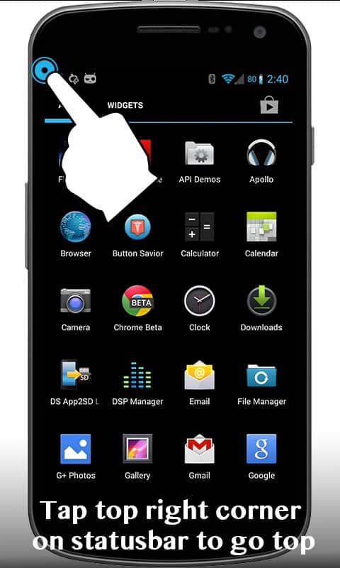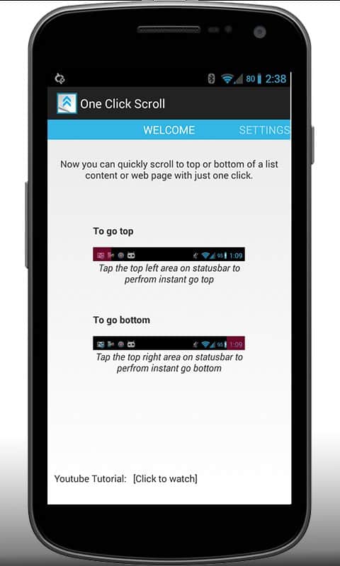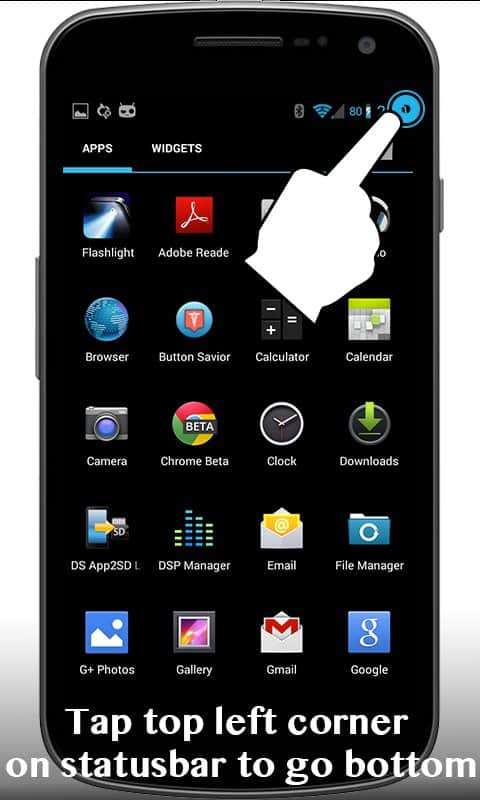 Uzun listeleri ve dikkat çekici web sayfalarını kaydırmak genellikle yorucu görünüyor. OneClick Scroll bu sorunu çözmek için tasarlandı. Bu küçük yardımcı program sayesinde, durum çubuğunun sol ve sağ kısmındaki basit dokunuşlarla listenin üst ve alt kısımlarına geçiş yapabilirsiniz. Bu yöntem, tüm uygulamalarda, akıllı telefon ayarlarında ve herhangi bir web sitesinde çalışacaktır.