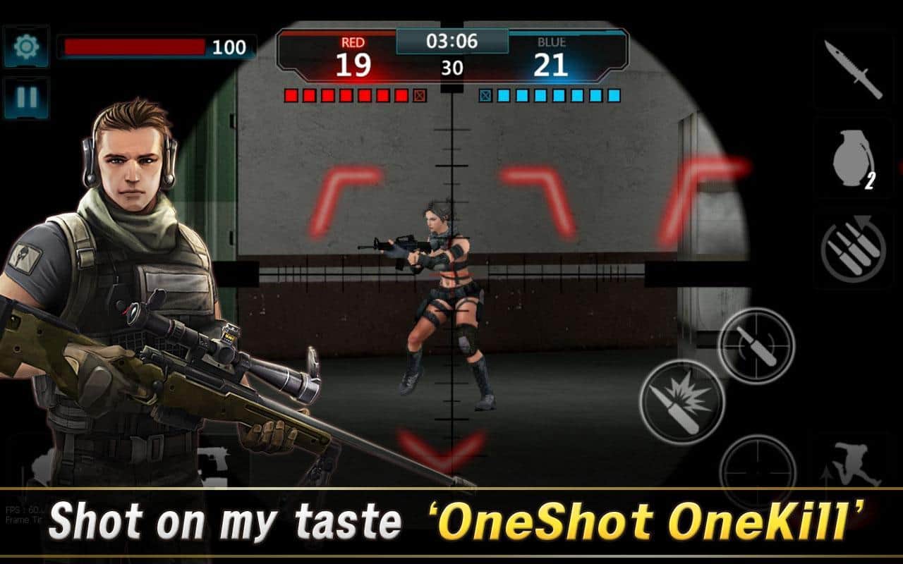 OneShot OneKill - FPS (SEA) - Düşman takımına veya hatta bir klana karşı arkadaşlarınızla birlikte savaşın. Bu çevrimiçi nişancıda 8'e 8 savaşlara katılacak ve bunları kazanmak çok kolay olmayacak. Bu oyunda çok basit ve eğlenceli bir mekanik, kullanışlı kontroller ve birçok farklı silah var. Eğer tamamen yeniyseniz, sadece eğitimi geçebilirsiniz; ama eğer kendinizi profesyonel olarak görüyorsanız, 1'e 1 modunda diğer bir oyuncuya karşı savaşmayı deneyin ve bu arada kimse arkanızı korumayacak.