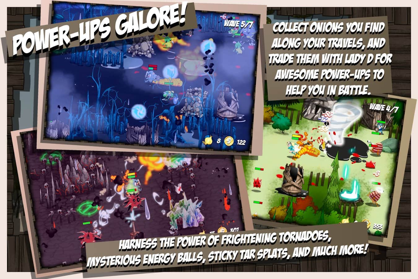 Soğan Gücü - macera ve rol yapma oyunu ile 'Kule Savunma' arasında çoklu platformda bir hibrit. Oyun boyunca 30 seviyede tam bir kaos yaşanıyor. Farklı canavarlar ısrarla yıkıcı bir şekilde ilerliyor ve sizin göreviniz onları yok etmek. Onların savunmanızı aşmasına asla izin vermeyin. Savunma için gerekli karakterleri seçebilirsiniz. Biraz taktik, bir tutam strateji, az bir şans ve bir miktar pozitiflik – işte zaferin ana kriterleri. Savunma için kuleler inşa edin, kahramanınızla savaşın. Yeteneklerini geliştirin ve kulelerinizi yükseltin – tüm bunlar düşman güçlerini durdurmanıza yardımcı olacaktır.