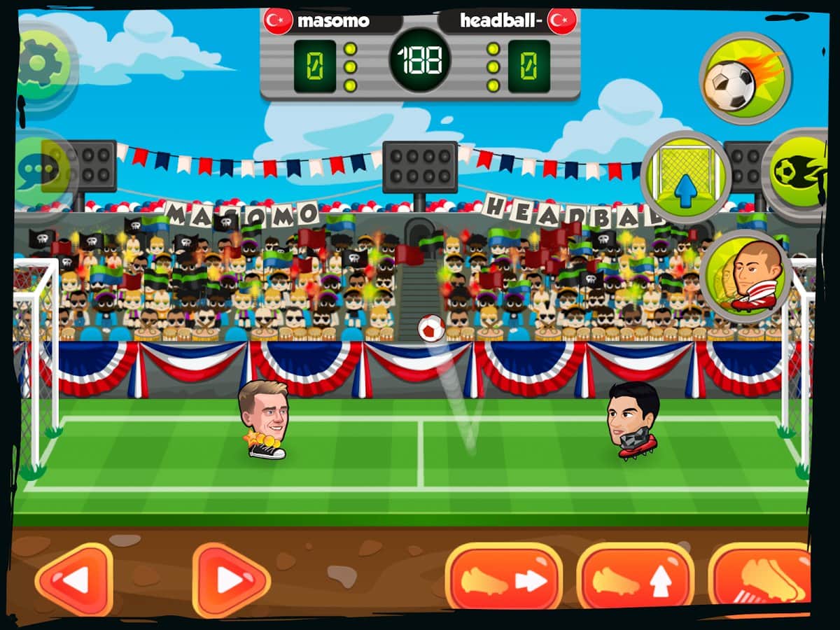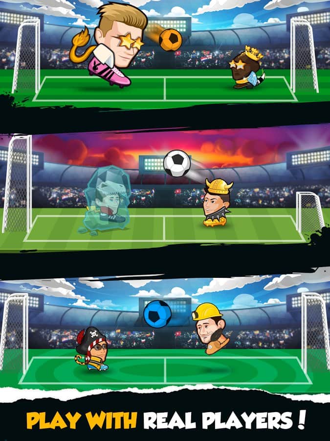 Çevrimiçi Baş Topu – Android için futbol oyunu, sizi sıkılmaktan kurtaracak farklı oyun modları ile. Neredeyse 100 farklı karakterden birini seçin, her biri kendine özgü bir görünüme sahip ve futbol sahasına çıkıp güçlü rakiplerle mücadele edin. Bu oyunda, arkadaşlarınızla, dünyanın dört bir yanındaki diğer oyunculara karşı oynayabileceğiniz ve internet erişiminiz olmadığında kullanabileceğiniz çevrimdışı moda sahip birkaç oyun modu bulunmaktadır. Bu oyundaki her kahraman, ek süre, küçük kaleler, büyük oyuncu, ters mod, dondurucu top, ateş topu, oyuncuyu dondurma, görünmezlik, oyuncu klonlama ve büyük kaleler gibi 10 süper yetenek kullanabilir. Bu yetenekleri akıllıca kullanarak maç stratejinizi geliştirin. Yeterli puanı toplayın ve bu oyundaki en iyi oyuncu olun.