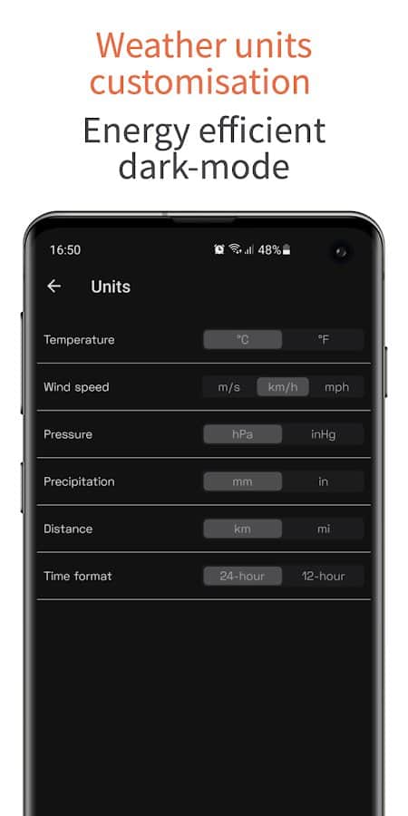 - Hava ölçüm birimlerini istediğiniz gibi değiştirme;