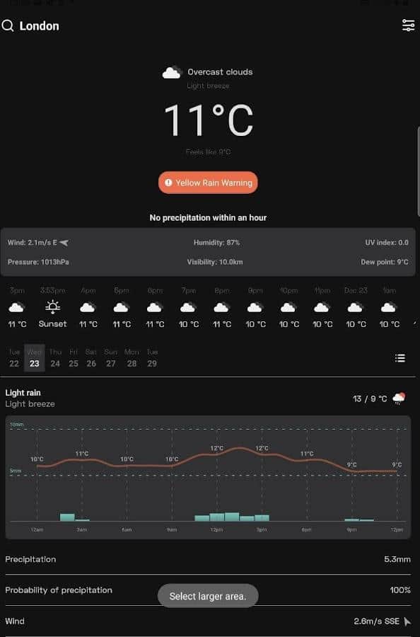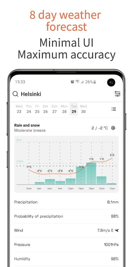 OpenWeather uygulaması ile hava koşullarına bağlı olarak yaklaşan işleri kolayca ve hızlı bir şekilde planlayabilirsiniz. Hava tahmini her zaman cihazınızda elinizin altında olacak.