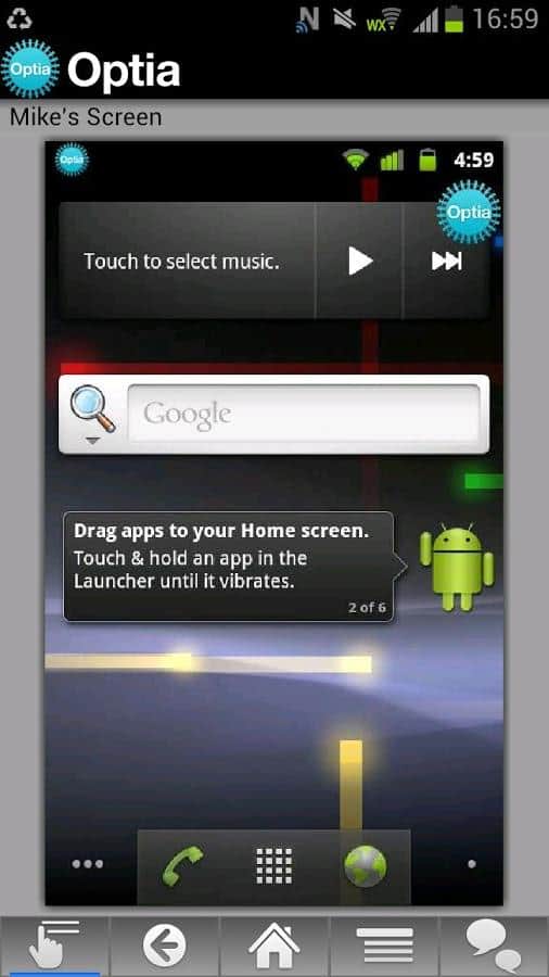 Optia – başka bir akıllı telefondan uzaktan kontrol imkanı sunan mükemmel bir Android uygulaması. Her şey çok basit, alıcıya bir istek gönderiyorsunuz ve o da onayladığında kontrol oturumuna başlayacak. Kullanıcı, cihazın tüm işlevlerine, 'ana sayfa', 'geri', 'menü' ve diğer butonlar dahil olmak üzere, erişim kazanacak. İyi kontrol etmeler!