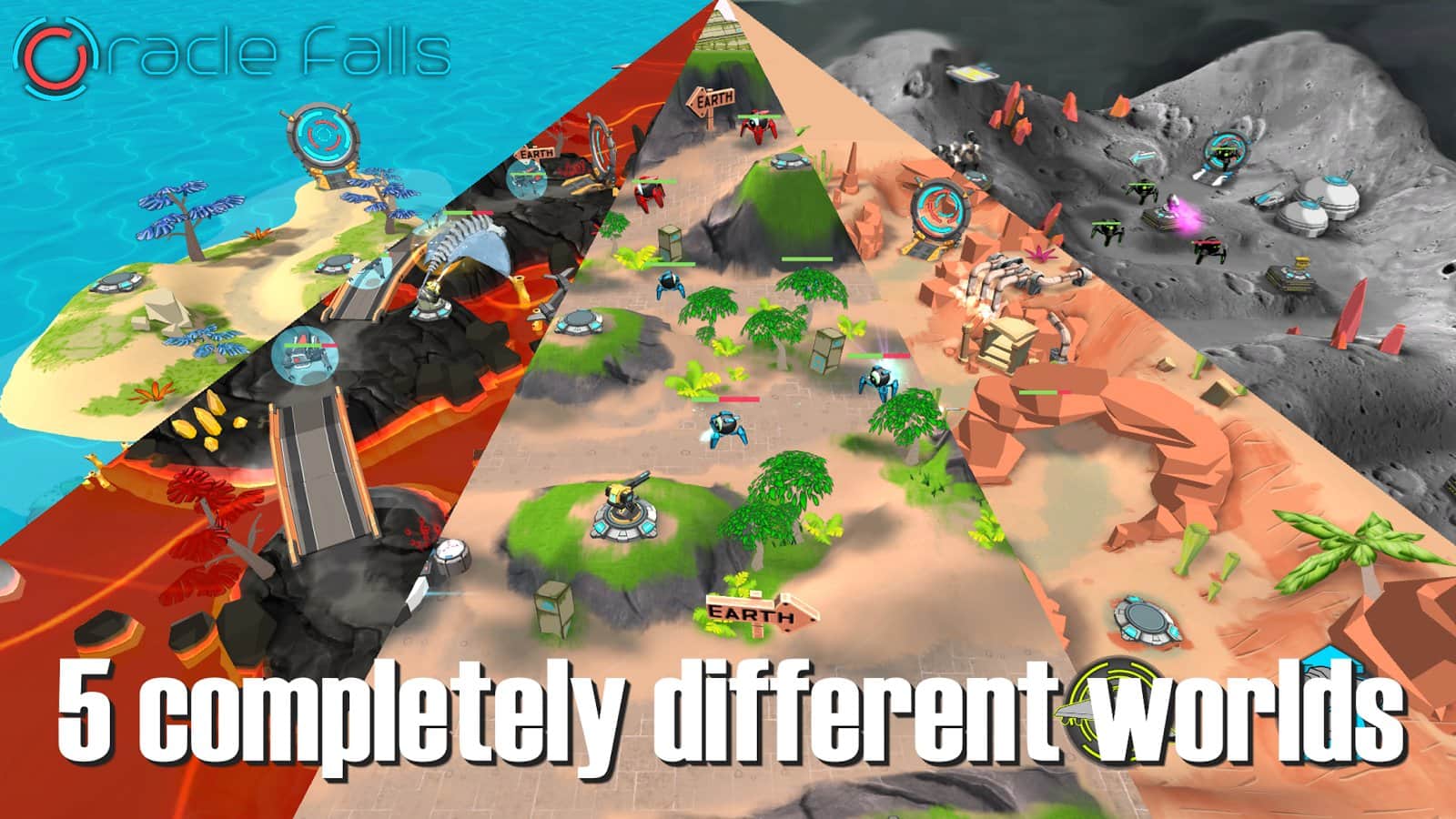 Oracle Falls - Yeryüzüne bilinmeyen bir uzaylı ırkı saldırdı ve en yeni robot teknolojilerini kullanıyorlar. Göreviniz onlardan geri kalmamak ve otomatik kuleler yardımıyla üssünüzü korumak. Elbette oyun ilerledikçe kulelerinizi açacak ve güçlendireceksiniz, ancak burada inşaat geminizin de çok önemli bir rolü var. Onun yardımıyla kristalleri kullanarak kulelerinizi geçici olarak güçlendirebilirsiniz. Kristalleri yenilemek için geminizi onların bulunduğu yere gönderin.