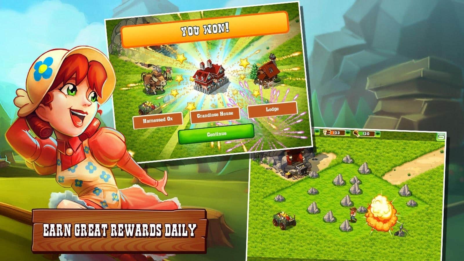 Kendi kişisel kasabanızı inşa edin: evler inşa edin, hasat toplayın ve sakinlere bakın. Ayrıca, alabileceğiniz mücevherler ve yararlı eşyalar için altın çıkarın.