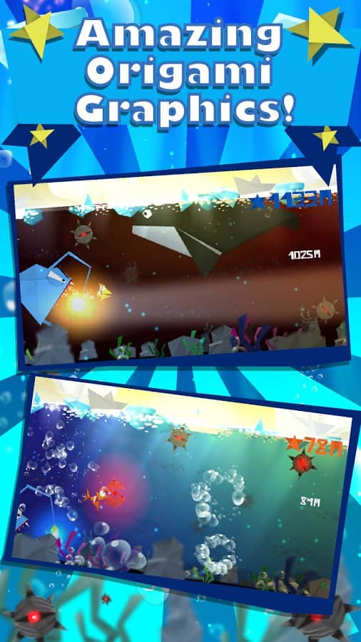 Ori Origami Balığı – oyun, küçük bir origami balığının hayatını kurtarmaya çalıştığı eğlenceli bir arcade oyunudur. Arkasında dev ve korkutucu bir balık, onu yemek için deniz sularında peşinden koşmaktadır. Tüm gücümüzle yüzmeye çalışıyoruz ve düşmanımızdan mümkün olduğunca hızlı kaçmaya çalışıyoruz, ama bu gerçekten zor. Yol boyunca deniz derinliklerindeki mayınlar gibi çeşitli engellerle karşılaşacaksınız.
