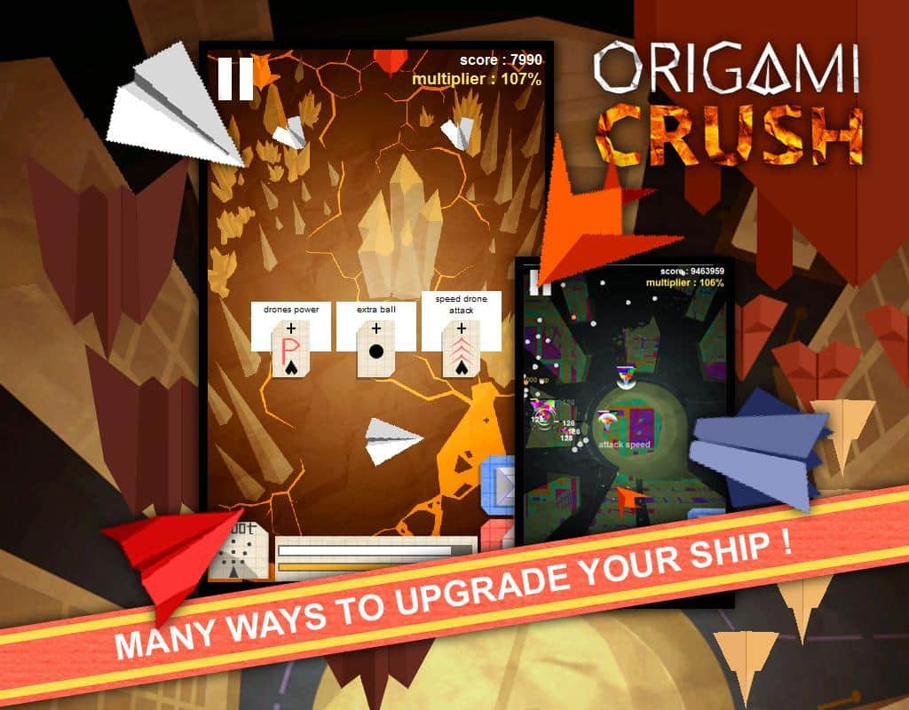 Origami Crush : Oyunseverler Versiyonu – origami stilinde yapılmış bir arcade oyunu, burada tüm kahramanlar ve çevre grafikleri kağıttan yapılmıştır. Bu, tehlikeli dünyalarda uçan bir kağıt uçağı yönetmeniz gereken zorlu bir oyundur ve düşmanları yok etmelisiniz. Bu oyunda sunulan 8 farklı uçaktan birini seçin ve çeşitli görevleri yerine getirerek uçun. Güçlü patronlarla eşitsiz bir savaşa katılın, onları yok ettiğinizde özel yetenekler kazanacak ve daha dayanıklı hale geleceksiniz. Düşman dalgalarını yok edin ve bu oyunda sıralama istatistiklerinizi güncelleyerek belirlediğiniz hedefe doğru daha da yükseğe çıkın.