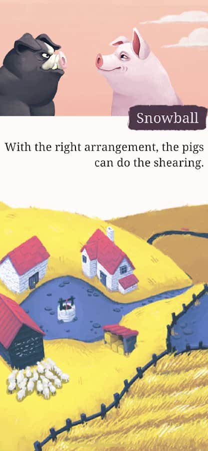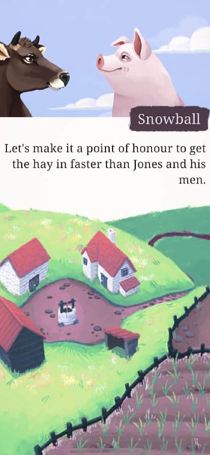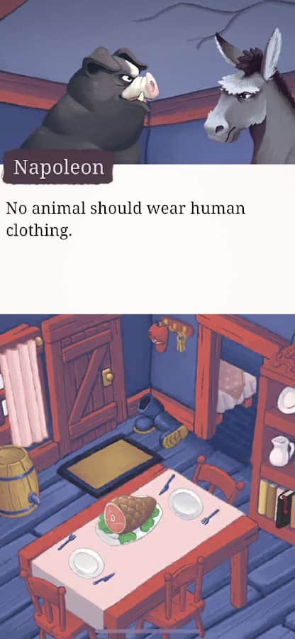 Orwell'in çiftliğinde hayvanlar, insan sahiplerinden ayrıldılar. Artık onlar baştalar. Görevlerini dağıtın, kaynaklarınızı yönetin, yasaları seçin ve propagandalarını yönlendirin. Hangi hayvanların kurban edileceğini ve hangilerinin 'diğerlerinden daha eşit' olacağını belirleyin. Oynama şeklinize bağlı olarak, kitapta tanımlananlara çok benzeyen ya da Orwell'in asla yaşamadığı olaylardan etkilenen durumlarla karşılaşabilirsiniz.