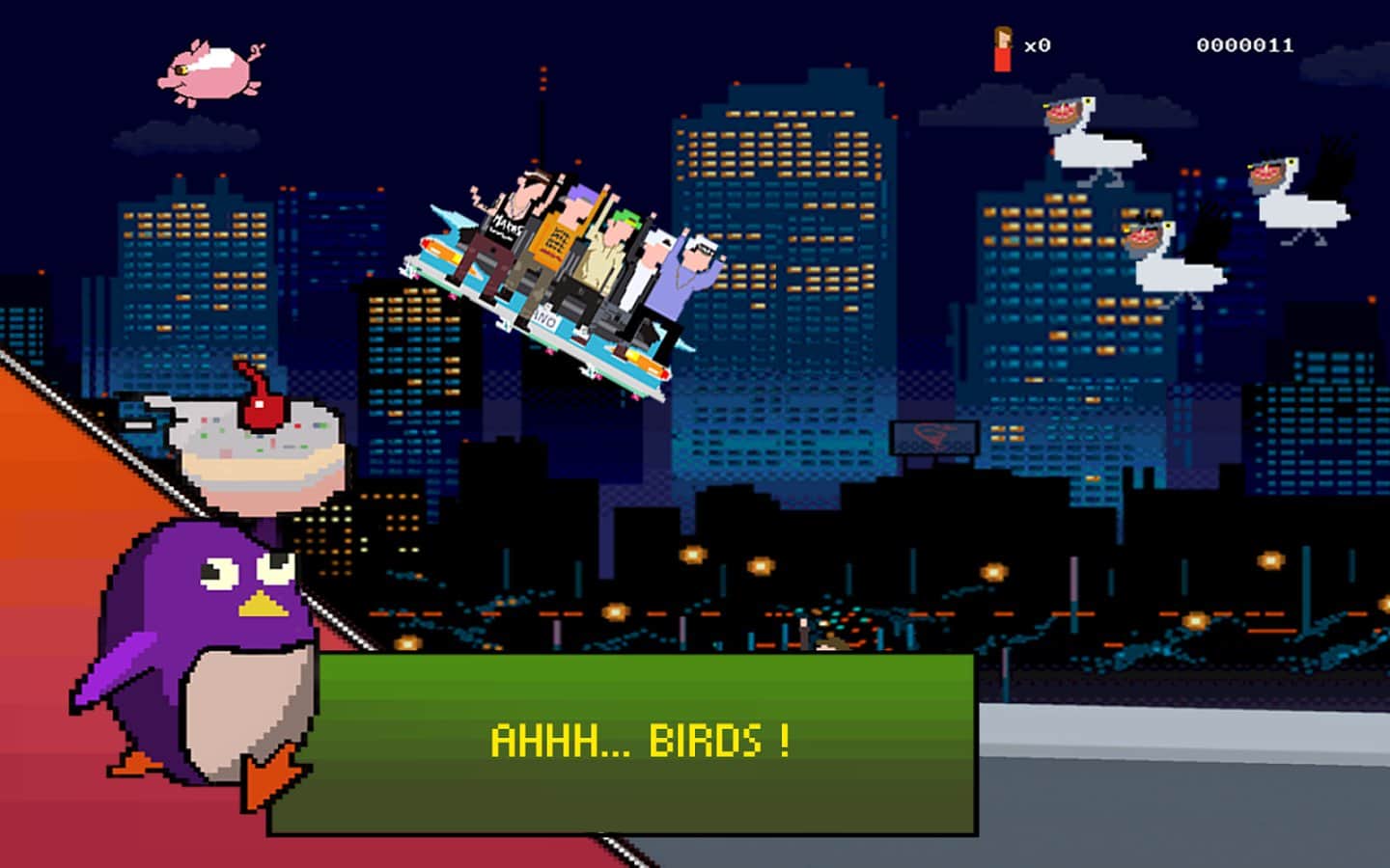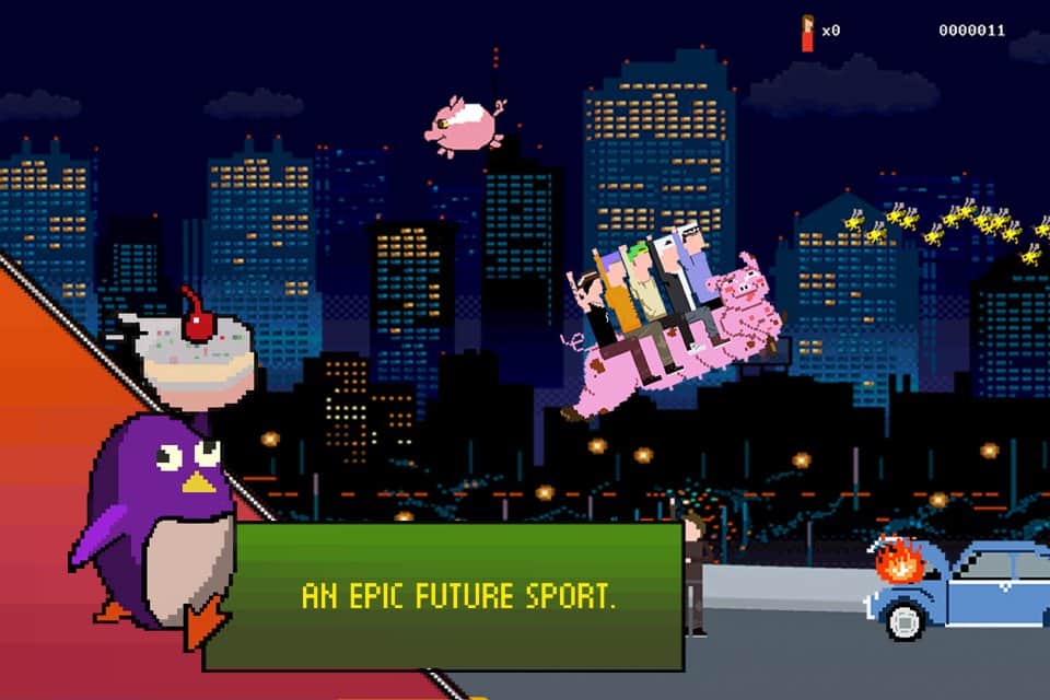 Ayy! Kanepe - sıkı dostlar grubu kanepeyle uçmaya karar verdi, bakalım ne oldu. Arkadaşlarla kanepeyi havaya fırlatıyoruz ve uçuyoruz, çeşitli bonuslar topluyoruz, kuşları vuruyoruz, ateş, timsah nefesi, uçan domuzlar, dans eden robotlar, garson penguenler ve diğer garip varlıklar gibi çeşitli engellerden geçiyoruz. Oyun pikselli grafiklere ve eski oyun konsollarına özgü retro tarzına sahip.