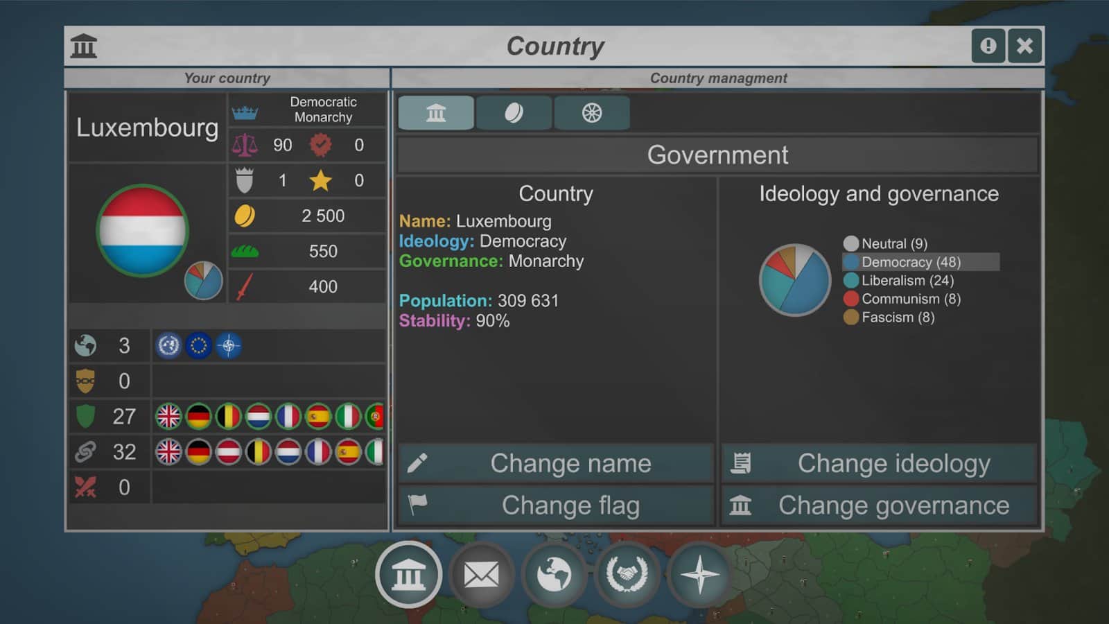 Derinlemesine bir iç politika sistemi, oyuncuların kaynakları ve imparatorluklarının önceliklerini yönetmelerine yardımcı olur; eğitim, sağlık ve ordu alanında önemli kararlar almalarını sağlar.