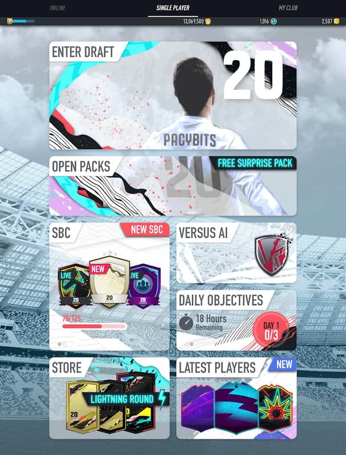 PACYBITS FUT 20 - Android'de kendi futbol kulübünüzü oluşturabileceğiniz bir spor oyunudur. En iyi antrenör olun ve dünyanın en büyük futbol kulübünü yaratın. Futbolcu kartları koleksiyonları toplayın ve doğaçlama turnuvalar düzenleyin. Günlük ve haftalık görevlerin yanı sıra takım kurma görevlerini yerine getirerek benzersiz ödüller kazanın. Yeni kartlar toplayın ve diğer oyuncularla takas yapın. En iyi oyuncu olduğunuzu kanıtlayın ve en iyi kulübü inşa edin.