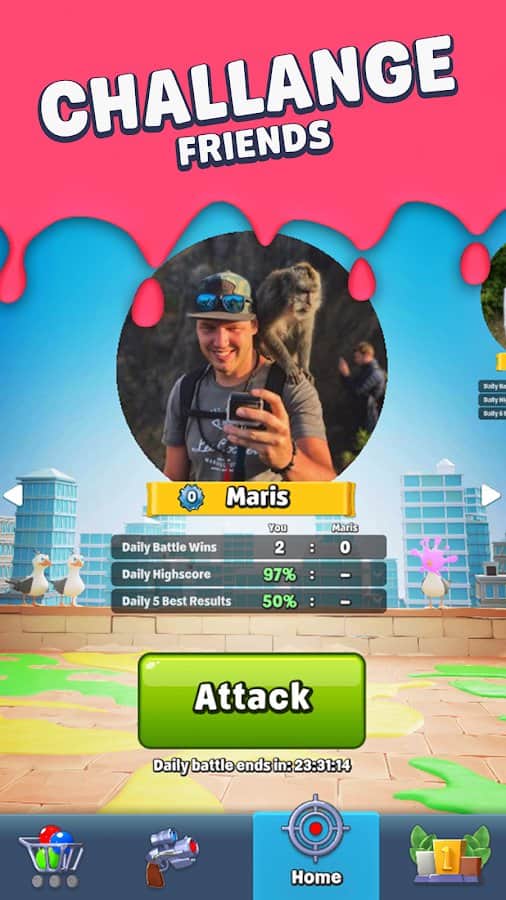 Boya Savaşları – çok eğlenceli ve çok yönlü bir oyun, bunu arkadaşlarınızla deneyimleyebilirsiniz. Profilinizi kaydettirmeniz ve bir fotoğraf eklemeniz gerekecek, gerçek adınızı yazın veya bir takma ad düşünün. Mevcut lokasyonlardan birine gidin ve paintball oynayın. Size orman, dağlık alanlar ve hatta bir şehir dükkânı sunulacak. Stoklarınızı yenileyin ve saldırıya uğramaktan kaçının, eğlenceli sürecin tadını çıkarın ve bolca keyif alın. İlk saldıran olun ve atışlardan kaçının, sıralamada ilerleyin.