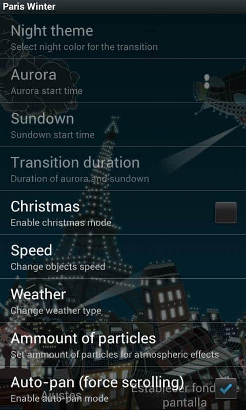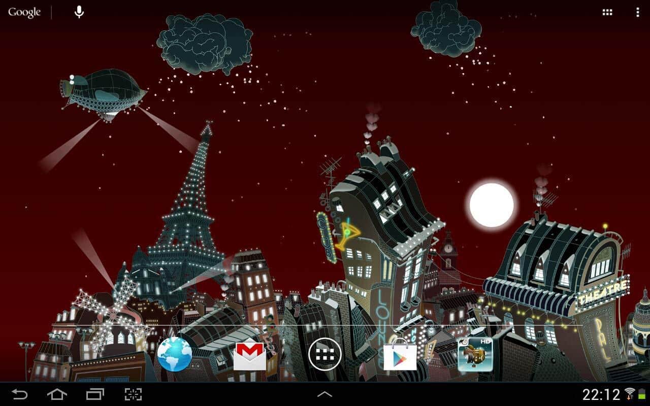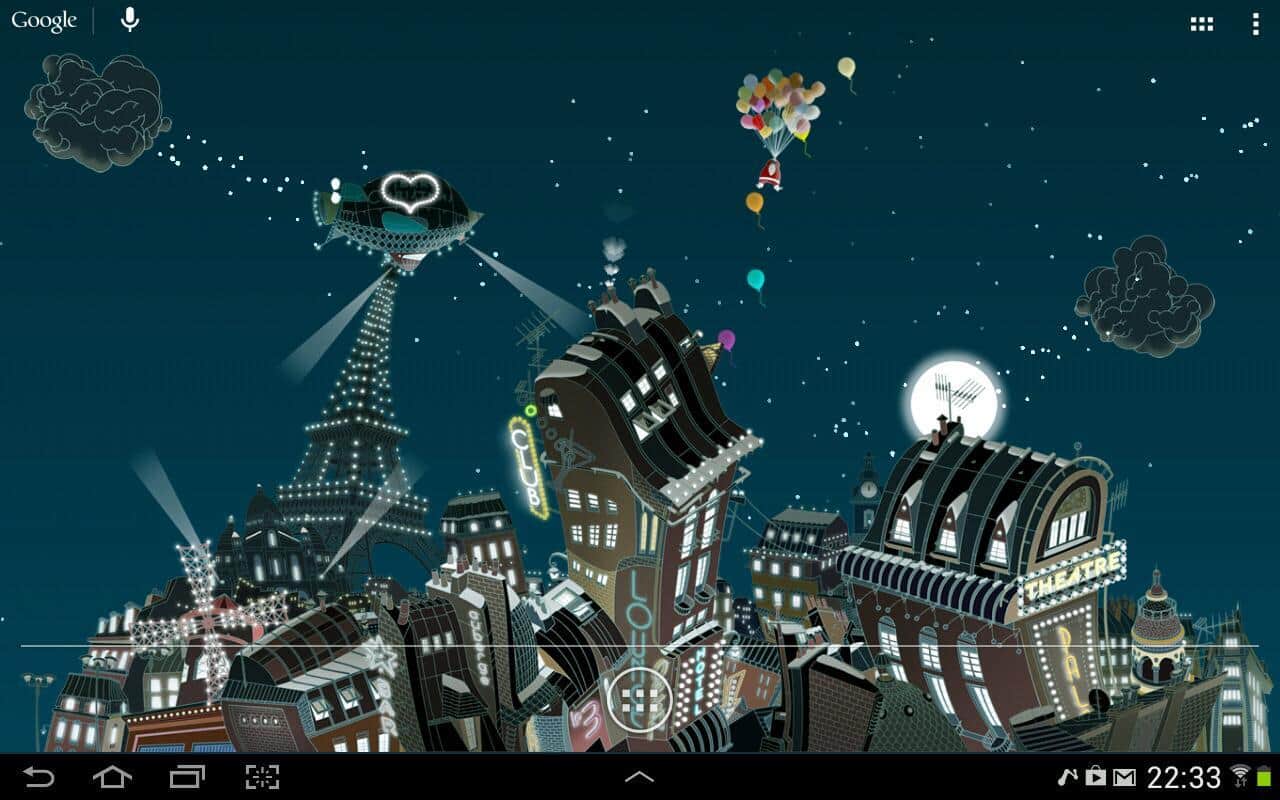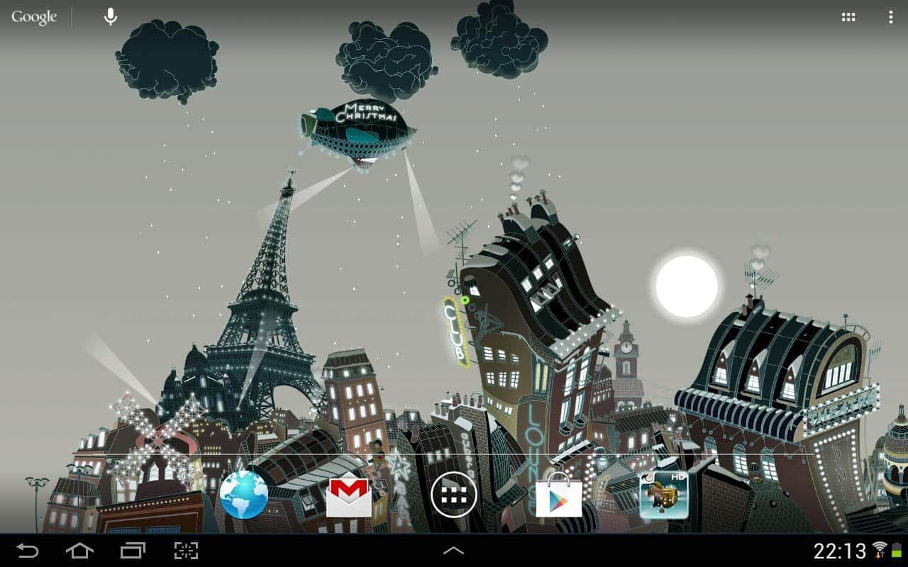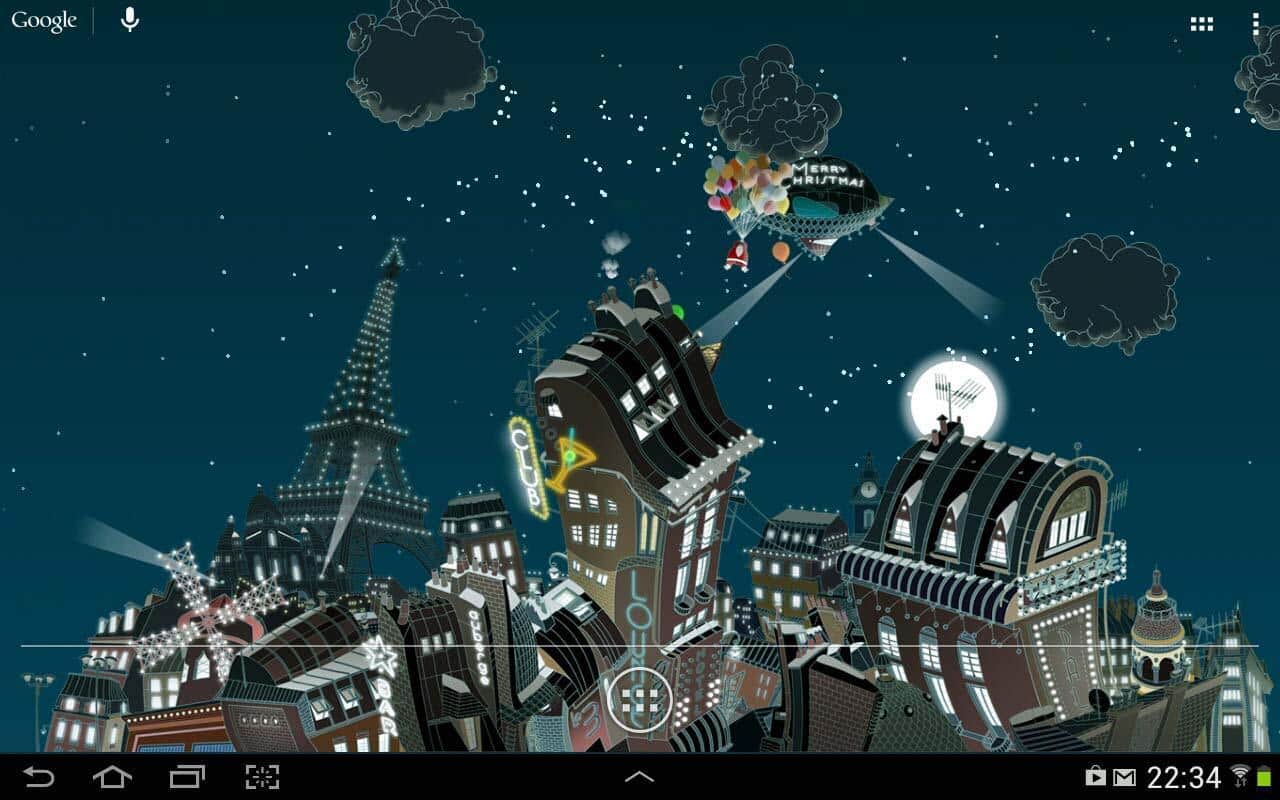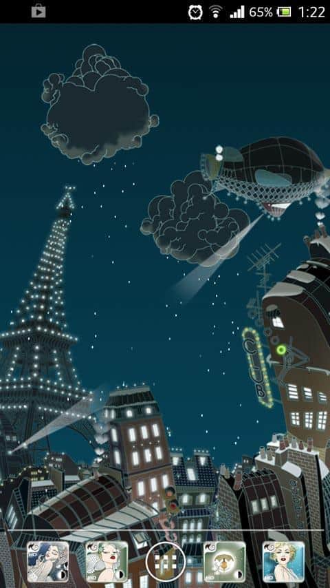 Paris kışı - Android tabletinizde minyatür Paris'te kışı geçirin. Kutlama ışıkları, şehrin üzerinde hava gemisi, balonlar, aşk ve mutluluk şehrinin üzerinde kar bulutları, kış mevsiminde harika bir ruh hali için başka neye ihtiyacınız var? Birçok ayar mevcut.