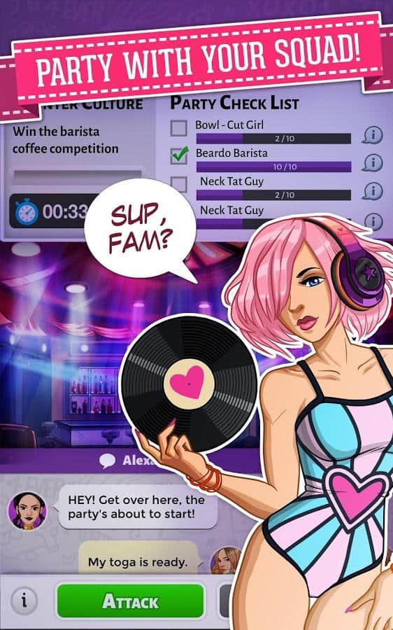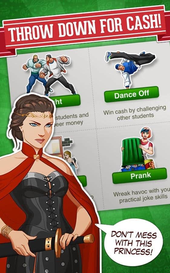 Yurdumda Parti – Android için heyecan verici bir macera oyunu, burada bir öğrenci rolünü üstlenecek ve üniversitede eğitim alacaksınız. Bu oyunda hareket özgürlüğüne sahip olacaksınız, arkadaşlarınızla iletişim kurabilir, kapalı bir kulübe katılabilir ve partiler düzenleyebilirsiniz. Bu oyunda kim olacağınıza karar verin ve size uygun bir aktivite seçin. Bu oyundaki birçok karakterle iletişim kurun ve yurt arkadaşlarınız arasında ilginç olanları bulun. İstediğiniz her şeyi yapın ve arkadaşlarınızla iletişim kurarak üniversite yıllarınızı eğlenceli bir şekilde geçirin ve kendinize bir partner bulun.
