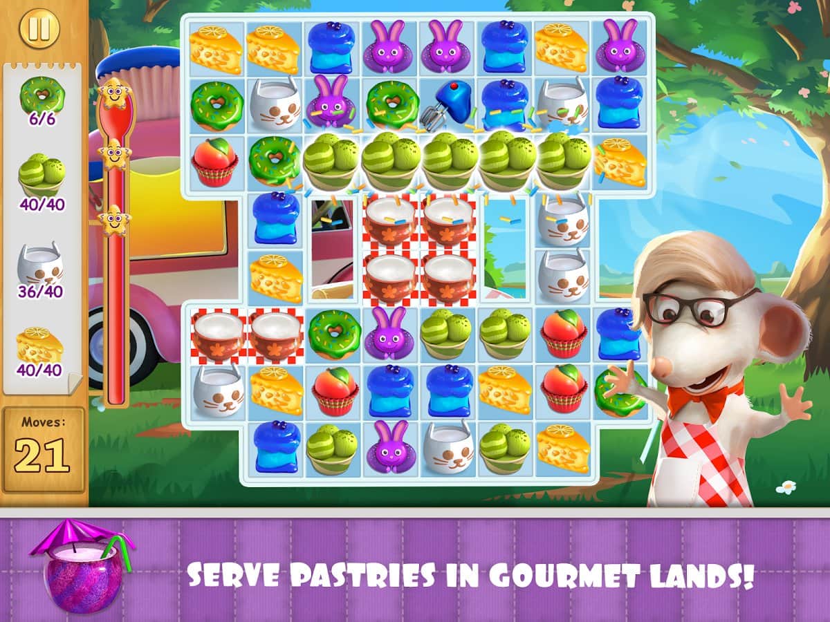 Hamur İşi Pikniği: Ücretsiz Eşleştir 3 – ‘tatlı’ bir rahat oyun, ‘üç bir arada’ türünde. Bu türdeki her oyunda olduğu gibi, aynı üç öğeyi yatay veya dikey bir çizgide toplamanız gerekiyor. Bu oyunda bunlar lezzetli ve parlak tatlılar olacak. Yerel halka lezzetli tatlılar sunun ve çeşitli görevleri yerine getirin: sürahileri sütle doldurun, tatlı uykularından küçük kedileri uyandırın ve diğer görevleri tamamlayın. Kurnaz tilkinin tüm planlarınızı bozmak istediğini unutmayın. Bu yüzden, mümkünse onu hamur işleriyle oyalayın. İyi eğlenceler!