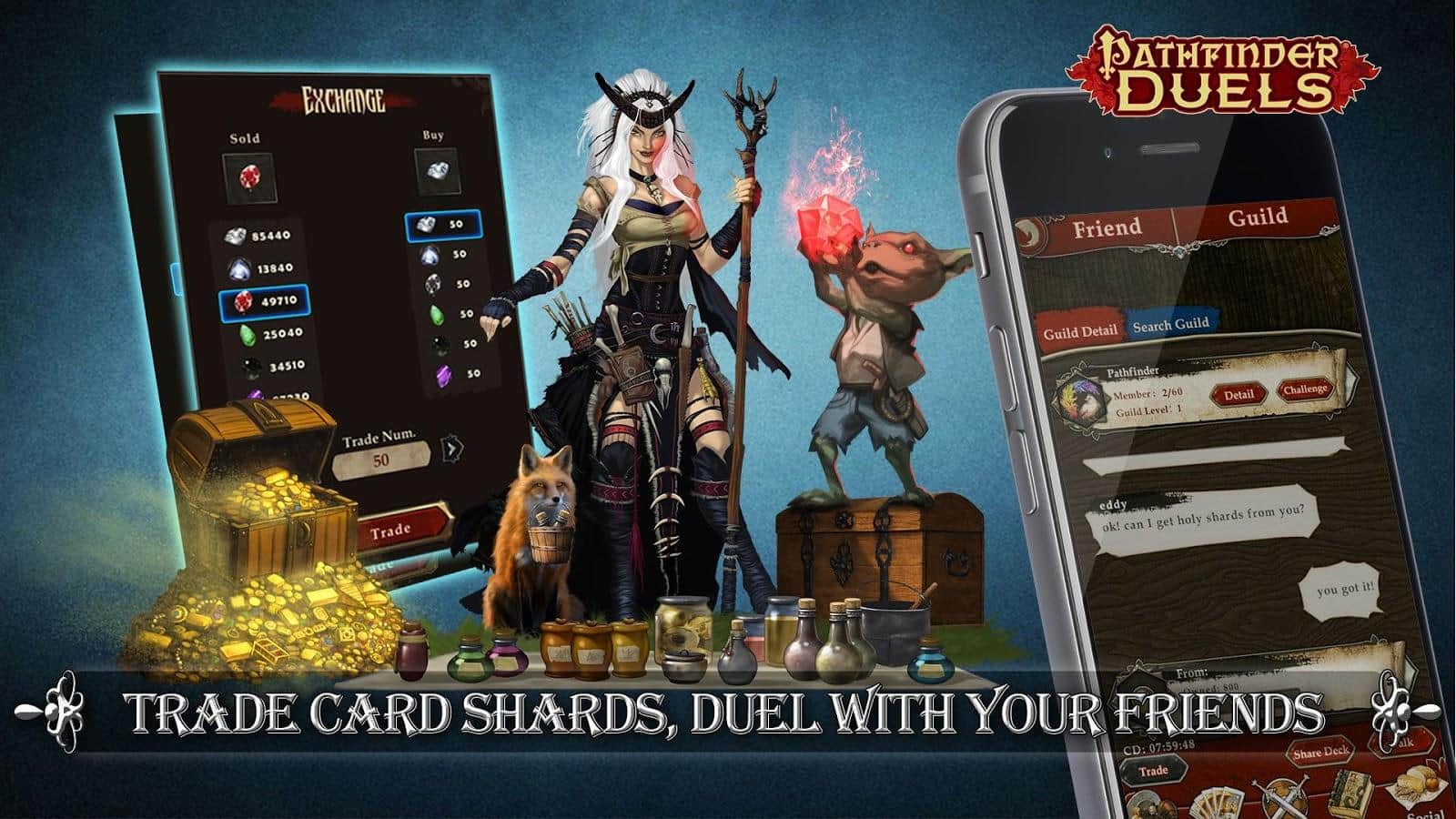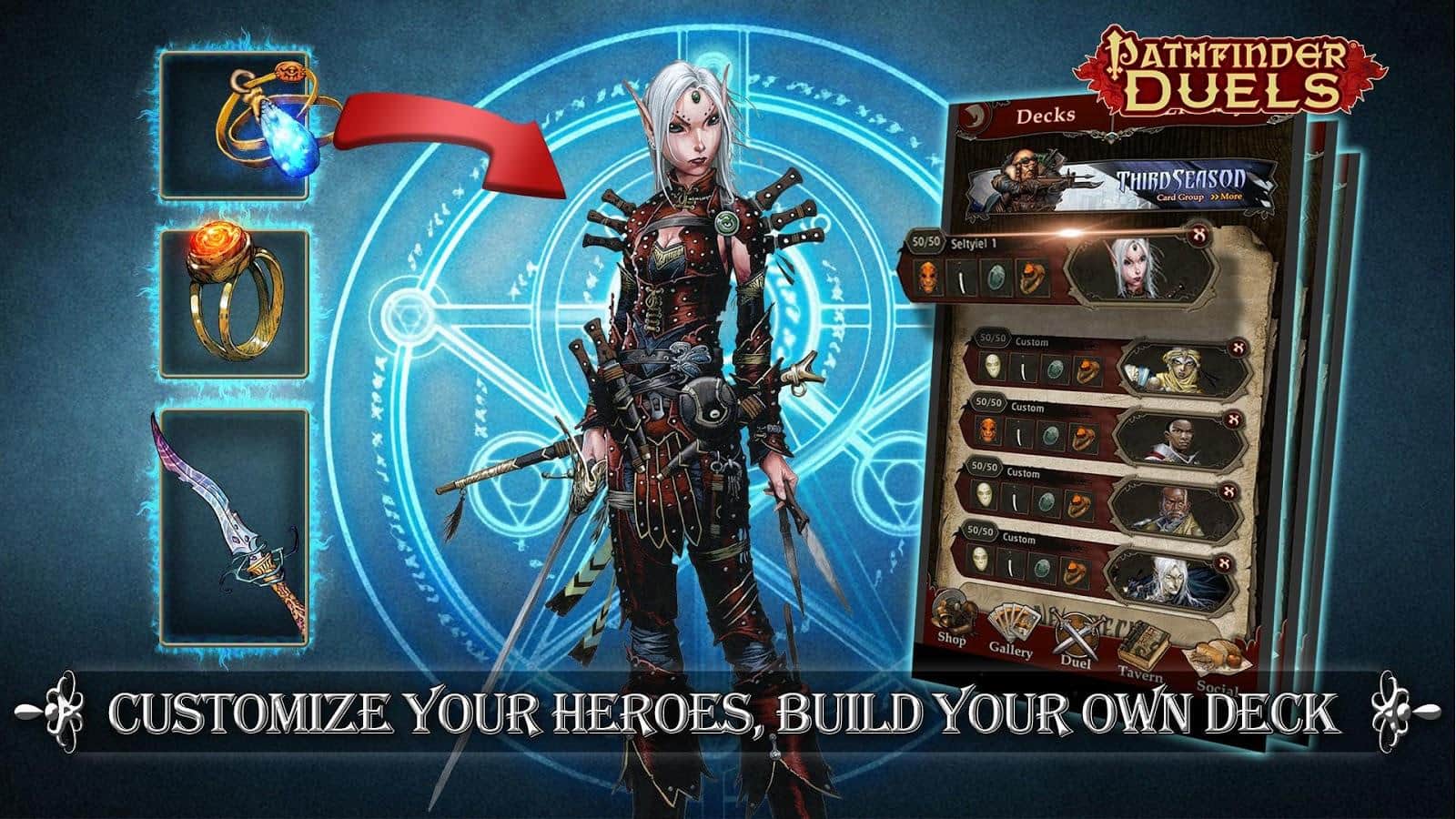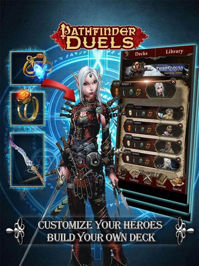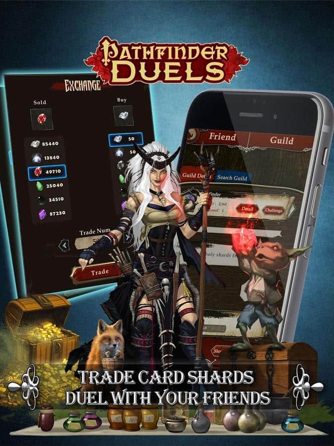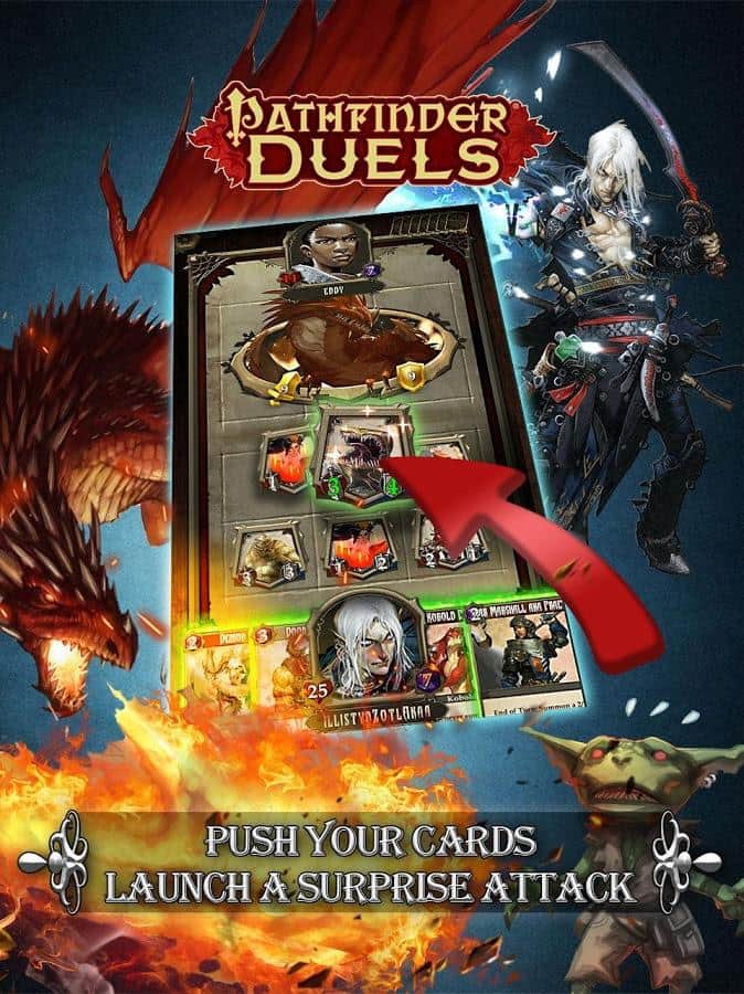 Pathfinder Duels – Android için bir kart oyunu, burada sayısız düşmanla savaşacaksınız. Yenilmez kart koleksiyonunuzu toplayın ve düşmanlarla savaşarak kahramanlarınızın tüm beceri ve yeteneklerini sergileyin. Rakibi alt etmek ve köşeye sıkıştırmak için oyun stratejinizi geliştirin. Destenize efsanevi kahramanlar ekleyin ve heyecan verici bir maceraya atılın. Düşmanlarla yapılan düellolarla değerli malzemeler kazanın ve bunları güçlü kartlar için takas edin. Sizin tarafınızda savaşmaları için güçlü ejderhaları çağırın, bu ejderhalar düşmanları öfke ateşiyle yok edecek.