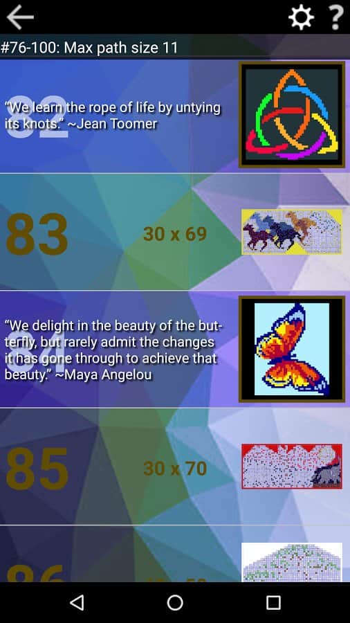 PathPix Edge – Android için heyecan verici bir bulmaca, burada zor çapraz bulmacaları çözeceksiniz. Bu oyun, Japon çapraz bulmacalarına benziyor, ama bir farkla, bu oyunda renkli bir resim elde etmek için çeşitli renkler kullanacaksınız. Bir çizgi ile bir çift numarayı birleştirin, ancak yolun uzunluğunun iki uçtaki numaraların değerine uygun olması gerektiğini unutmayın. Sayıları birbirine bağlayın ve hatayı düzeltmek için ekrana iki kez dokunun. Tüm kareler renkle doldurulduğunda, elde edilen resmi görebileceksiniz. Oyunda, yakınlaştırma ve tek parmak dokunuşu ile iki navigasyon yöntemi bulunmaktadır.