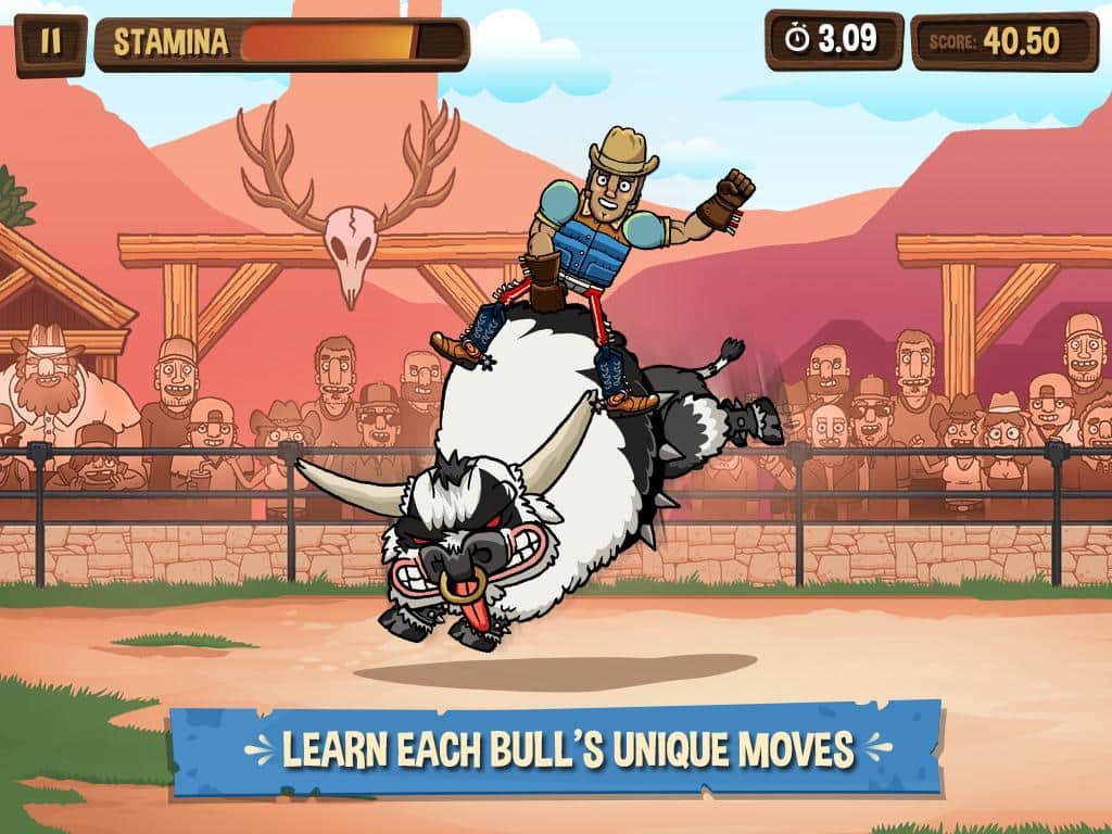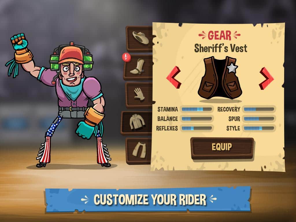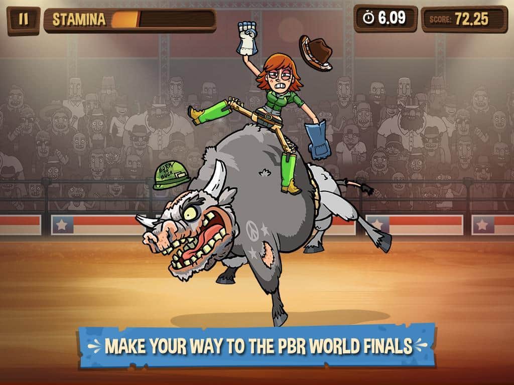 PBR: Öfkeli Boğalar - Android için bir boğa simülatörü, burada mümkün olduğunca uzun süre üzerinde kalmaya çalışacaksınız. Kendinize bir kahraman seçin ve boğanın sırtına oturun, ama sıkı tutunun, sizi 8 saniye eğlence ve büyük sıçramalar bekliyor, boğa sizi sırtından atmaya çalışacak. Oynayın ve PBR şampiyonasının finaline katılmanızı sağlayacak puanlar kazanın. Kariyerinize hemen başlayın ve birçok ödül kazanarak finale ulaşın.
