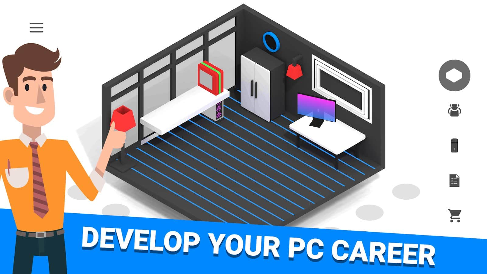 PC Creator - PC Building Simulator – Android için harika bir simülatör, burada bilgisayarları toplayacaksınız. Eğer sistem bloğunuzun içinde ne olduğunu her zaman merak ettiyseniz, bu oyun sizin için yapılmıştır. Bu oyunda bilgisayar toplayıcısı olacak ve bir acemiden kendi alanınızda bir profesyonele kadar ilerleyeceksiniz. Farklı bilgisayarları toplayın ve sökün, onlara işletim sistemi ve gerekli programları yükleyin. Bilgisayarınızı oyunlarda test edin ve en iyi sonuç için PC parçalarını overclock edin. Bilgisayar onarımlarını üstlenin ve parçaları değiştirin, ayrıca kripto para kazanın. Bilgisayar toplama konusunda büyük siparişleri yerine getirin ve arkadaşlarınızla işbirliği yapın.