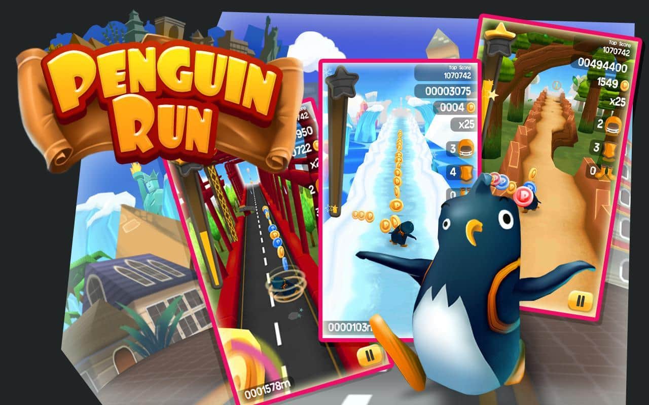 Penguen Koşusu - küçük penguene beyaz ayının pençelerinden kaçmasına yardım edeceğiniz bir Android oyunudur. Penguen bir kafeste hapsedilmişti, cesaretini topladı ve esaretten kaçtı. Peşindeki avcıdan kurtulmak için tüm kıtalar boyunca zıplaması ve kayması gerekecek.