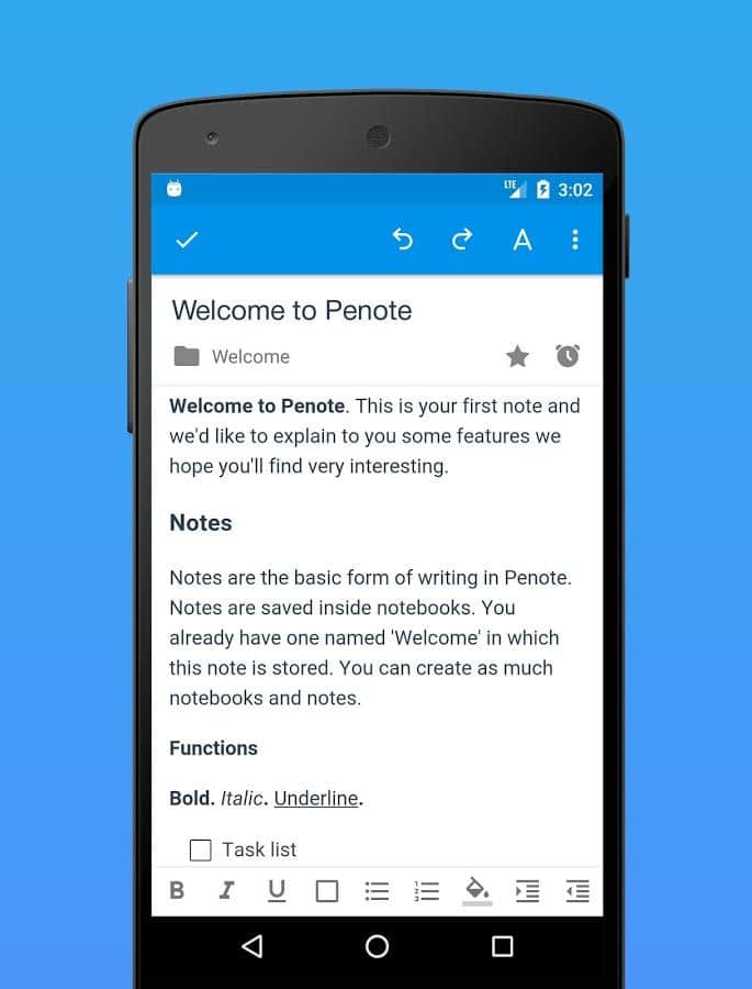 Penote - Notlar - Bu uygulama, notlar ve görev listeleri için en basit uygulamalardan biri olarak kabul edilmektedir. Bununla birlikte, sadece önemli bir şeyi hatırlamakla kalmayacak, aynı zamanda kendi programınızı da oluşturabileceksiniz. Herkese hitap eden basit ve hoş bir arayüze sahiptir.