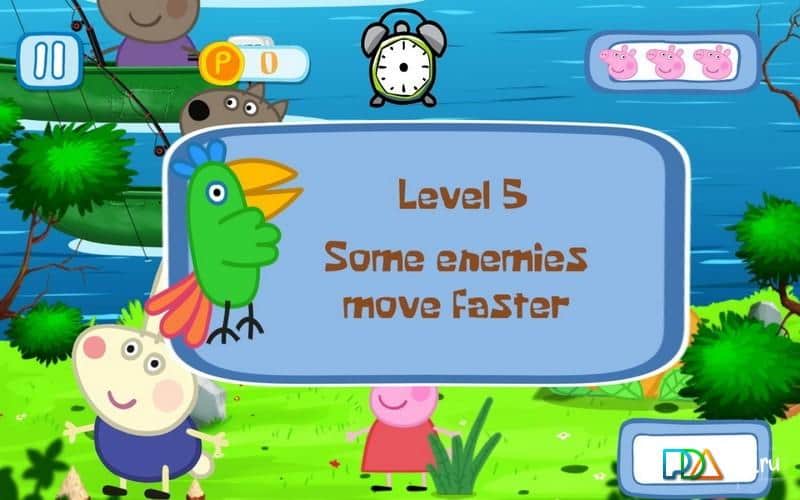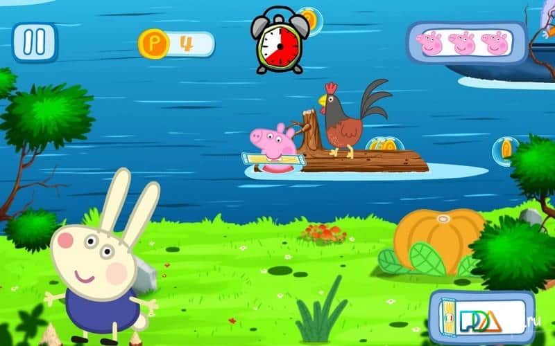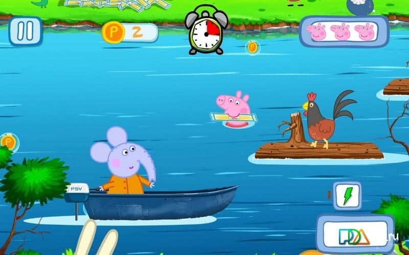 Peppa nehirde - çocuklar için bir oyun, burada Peppa'ya nehirden geçerken engelleri aşmasında yardımcı olacaklar. Peppa ve arkadaşları, nehir kenarındaki pikniğe gitmek için yola çıktılar. Nehirde oynayıp zıpladıktan sonra, tüm arkadaşlar acıktı ve yiyeceklerin diğer nehrin kıyısında kaldığı ortaya çıktı. Şimdi sizin göreviniz, Peppa'ya nehirden geçmesine yardımcı olmak ve bir paket spagetti taşımak. Yolunuzda botlar, kuşlar, yengeçler ve balıklar gibi çeşitli engeller olacak, bu yüzden dikkatli olun. Bir seferde sadece bir paket spagetti taşıyabilirsiniz ve her seviyede size dört paket gerekecek. Her seviyede dört deneme hakkınız olacak, bu yüzden zaman kaybetmeyin ve hemen nehirden geçin.