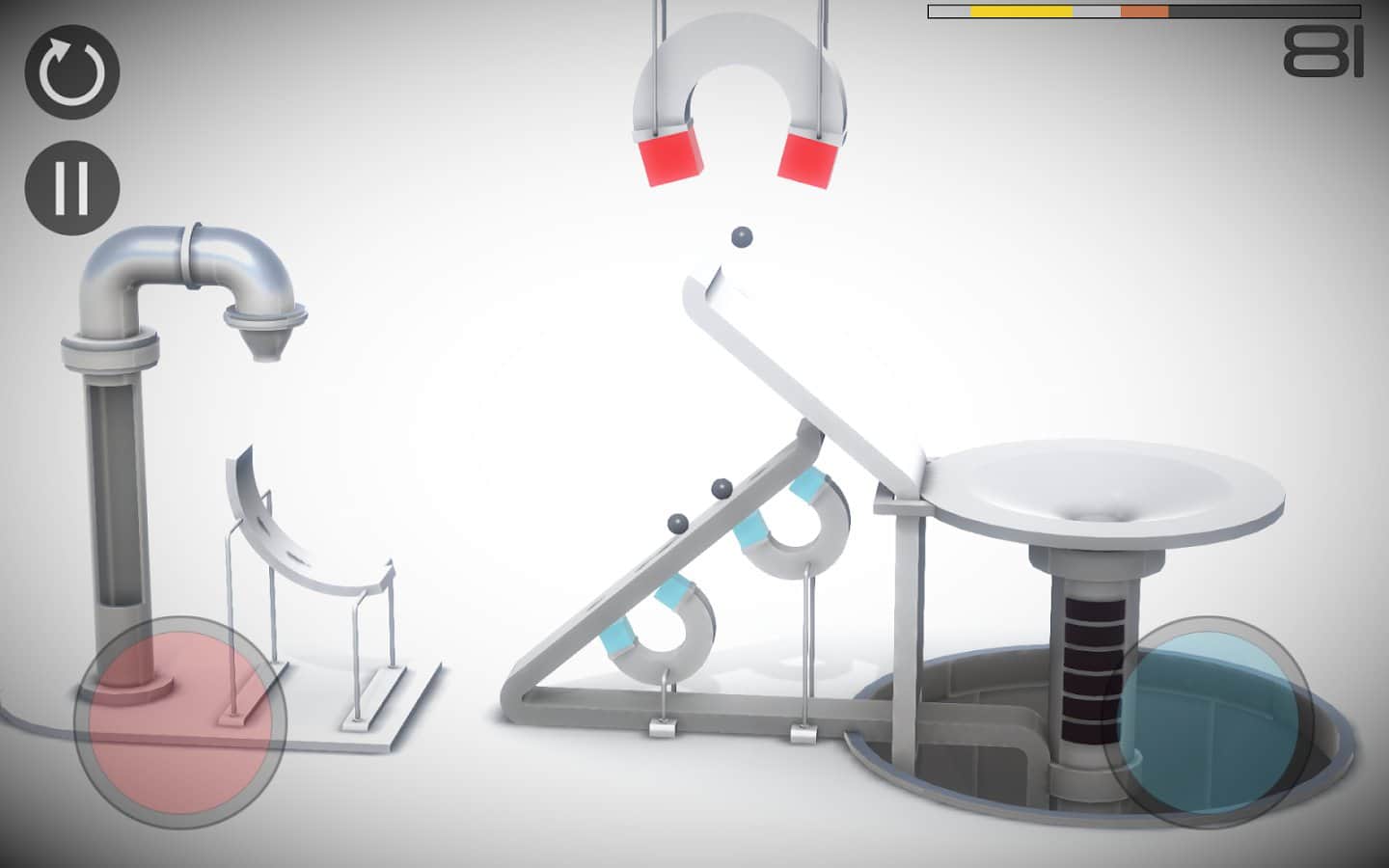 Böylece, karşımızda çeşitli mekanik cihazlar kullanarak topların hareketlerini yönlendirmekle görevli olduğunuz bir arcade bulmacası var; böylece onları belirli bir yere ulaştırmak. Üstelik, mekanizmaların, araçların, eklerin sayısını saymak imkansız. Oyun sürecini daha da zorlaştıran, seviyedeki aktif öğelerin isteğinize göre renk değiştirebilmesi ve ardından sizin tarafınızdan kontrol edilebilmesidir.