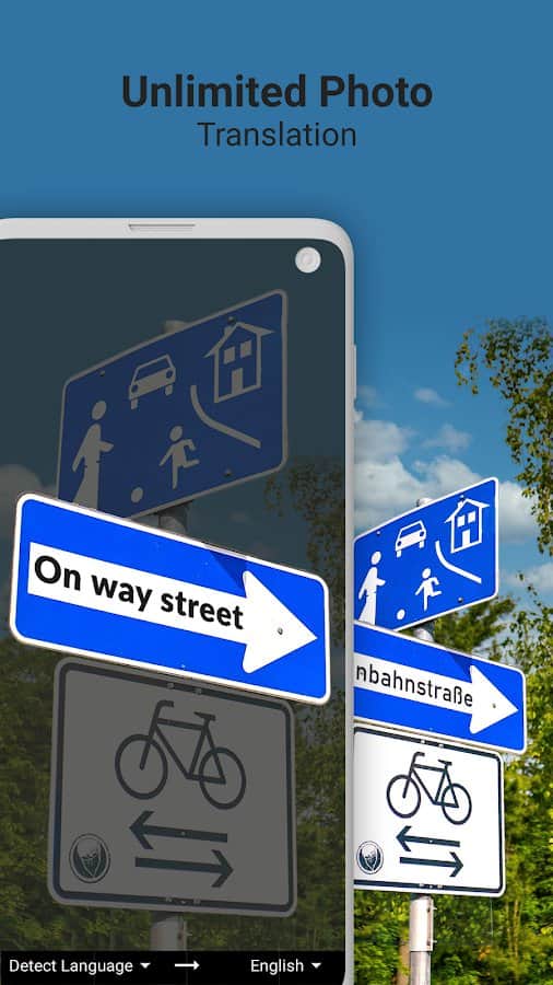 Fotoğrafla Çevirmen - kamerayla çeviri - Başka ülkelere seyahat ederken, yabancı bir dili mükemmel bir şekilde bilmek zorunda değilsiniz, çünkü herhangi bir kelime veya ifadeyi çevirmekte özel bir çevirmen yardımcı olabilir. Telefonunuzun kamerasını açmanız, gerekli yere odaklanmanız ve ardından fotoğraf çekip tam çeviriyi beklemeniz yeterlidir. Eğer yazı çok net değilse, flaşı açabilir veya her şeyi akıllı telefonun normal kamerasıyla fotoğraflayıp hazır fotoğrafı uygulamaya yapıştırabilirsiniz. Şu anda 100'den fazla dil kullanımınıza sunulmuştur!