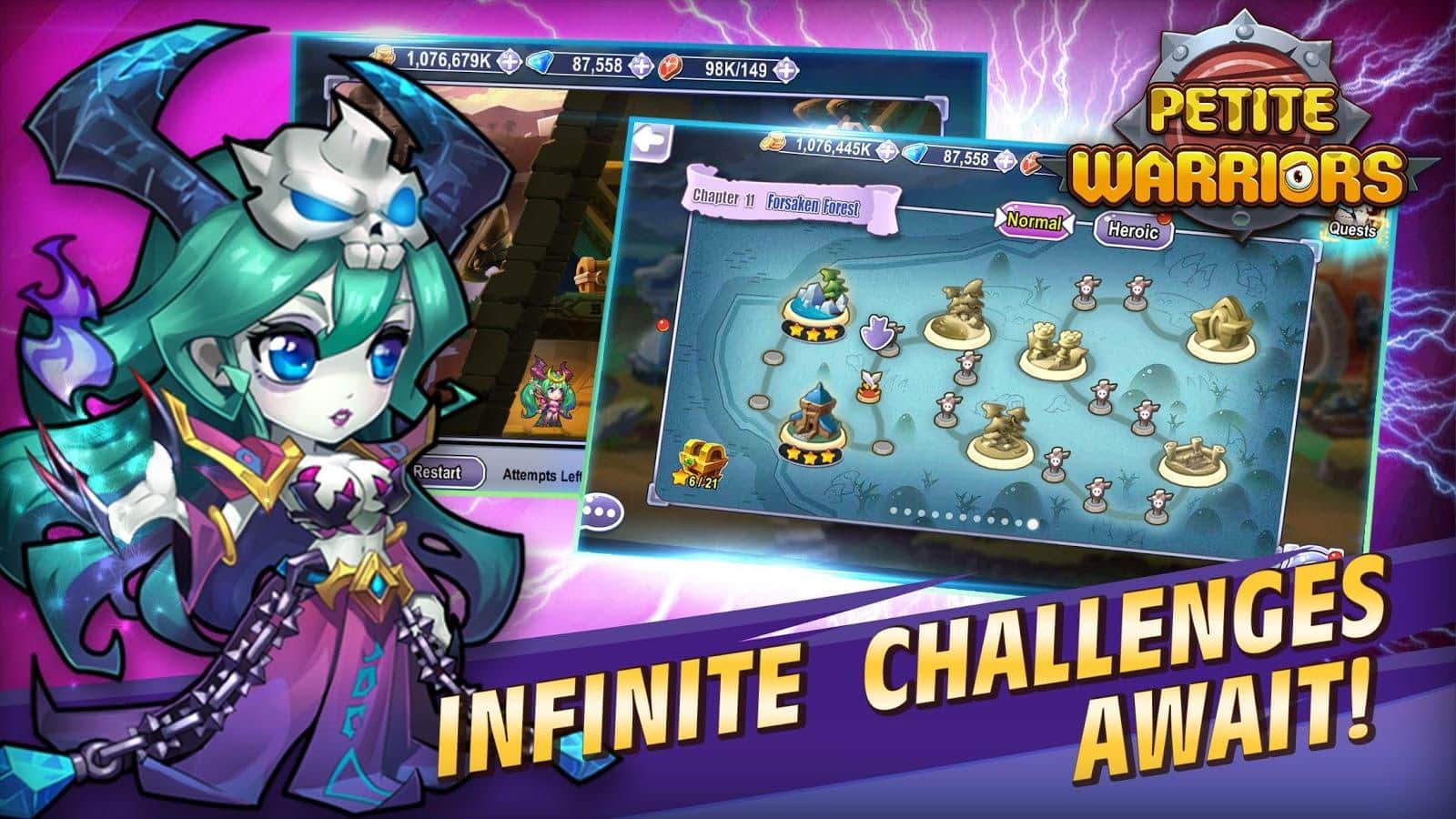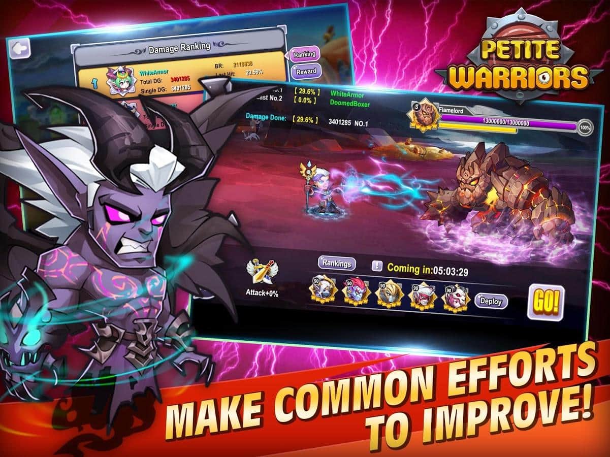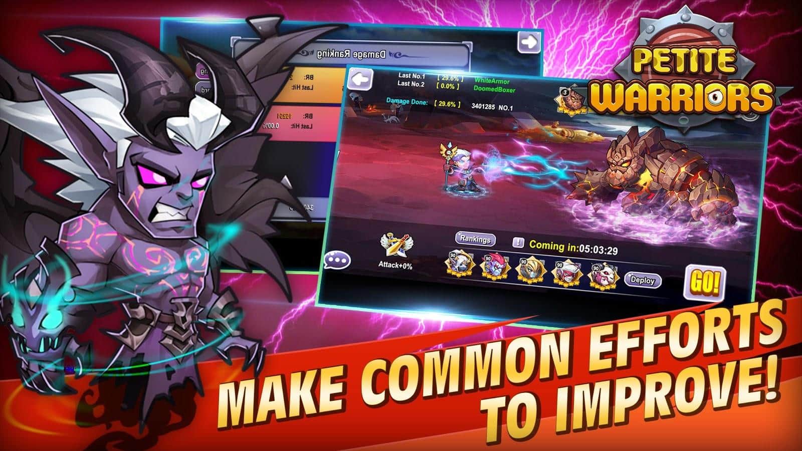 Küçük Savaşçılar – Android için bir RPG oyunudur, burada cesur kahramanlardan oluşan bir ekip yöneteceksiniz. Bu oyundaki ana göreviniz, sayısız şeytan ve canavarla savaşmak ve onları zorlu bir savaşta yenmektir. Her kahramanın yeteneklerini ve silahlarını kullanın ve dünyayı yok olmaktan kurtarın. Oyun ilerledikçe yeni kahramanlar keşfedin ve ekibinizi onlarla güçlendirin. Savaşta dikkatle hazırlanmış stratejiler uygulayın ve en güçlü düşmanı bile yenin. Güçlü düşmanlarla ve sayısız hazineyle dolu karanlık zindanlara inin. Savaşçılarınızın seviyesini yükseltin ve onları zırh ve silahlarla donatın.