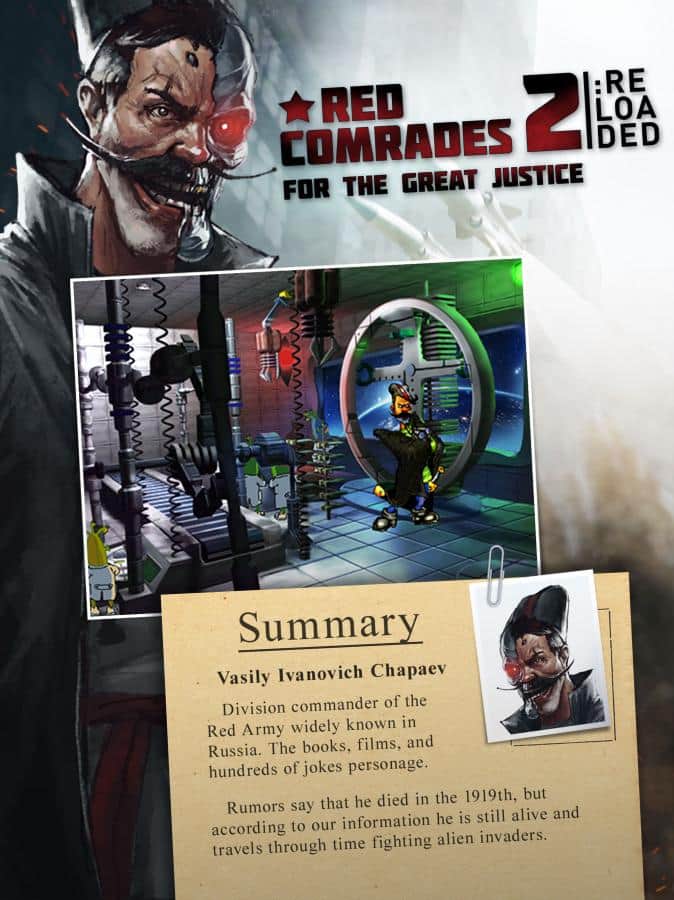 Petka ve Vasili Ivanoviç 2 – IOS için popüler oyunun ikinci bölümü, burada keskin mizah ve ilgi çekici maceraların atmosferine dalacaksınız. Bu oyun sizi 1917 yılına götürecek, burada yaralı Çapajev'e nehir geçişinde yardımcı olacaksınız, tam o anda kurtarıcı ışın onu uzay gemisine taşıyacak. Düşman kurşunundan ölmek yerine, kahramanımız demir vücutla bir terminatör olarak Dünya'ya geri dönüyor. İşte burada en ilginç kısım başlıyor. Oyunun ilgi çekici hikayesine tamamen dalın ve oyunun ana karakterlerine zorlu bulmacaları çözmelerinde, heyecan verici maceralardan geçmelerinde ve tüm düşmanlarını yok etmeye çalışırken yardım edin.