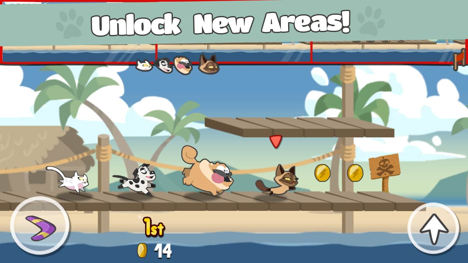 Evcil Hayvanlar Yarışı - Arkadaşlarla Eğlenceli Çoklu Oyunculu Yarış, Android için çok oyunculu bir oyundur, burada rakiplerinizle birlikte koşacaksınız. Kendinize bir evcil hayvan seçin ve çeşitli mekanlarda koşun, birinci olarak finish çizgisine ulaşmaya çalışın. Bu oyunda, köpekler ve kediler arasında sonsuz bir savaşa tanık olacaksınız. İlerleyin ve yol boyunca birçok madeni para ve bonus toplayın, bu size rakibinizi yavaşlatma veya karakterinizi hızlandırma imkanı verecek. Hızlı yarışlara katılın ve oyunun ilerleyişi boyunca kahramanlarınızı geliştirin. Madeni paraları toplayın ve karakterleriniz için lezzetli şekerler açın ve evinizi düzenleyin.