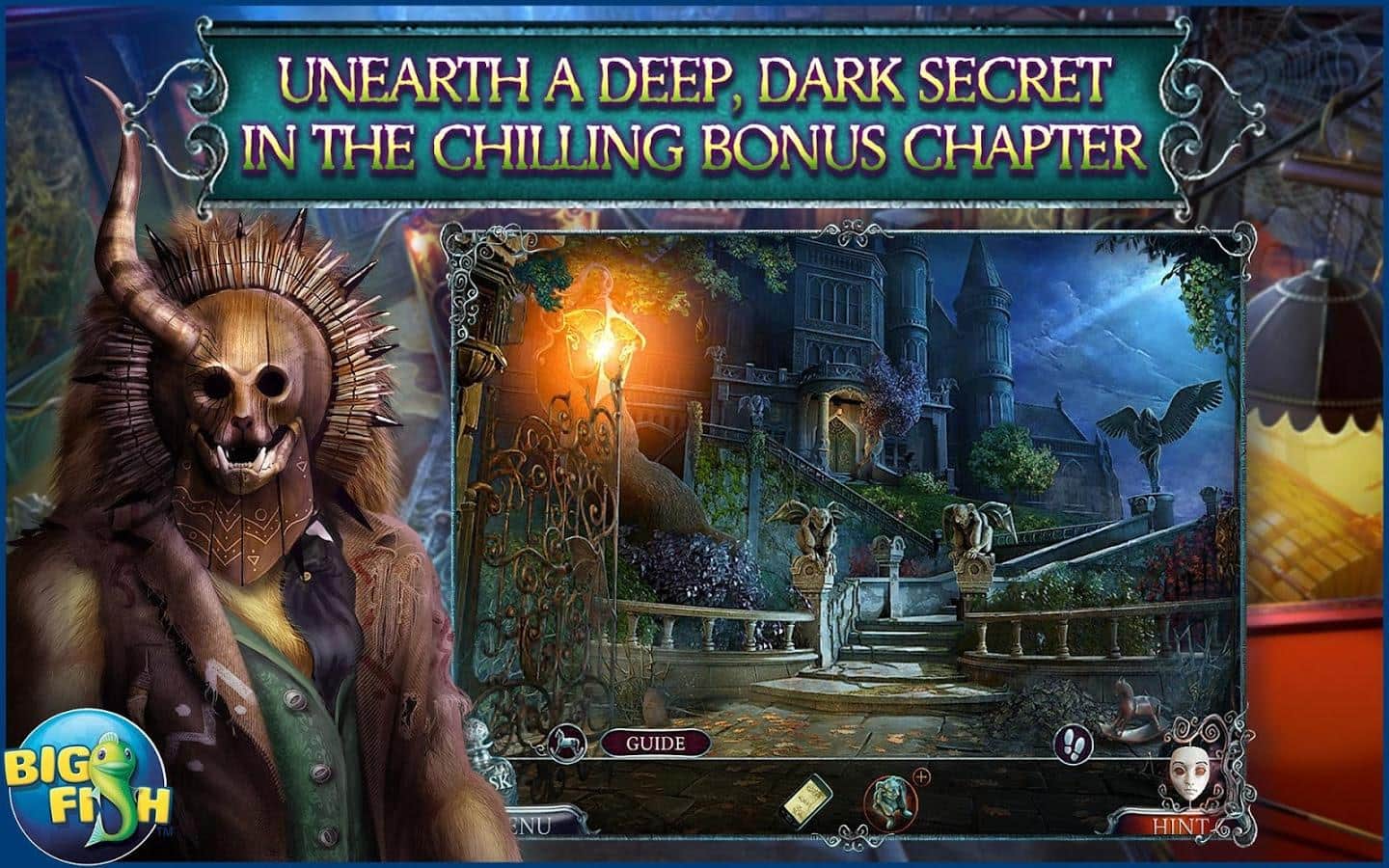 Phantasmat: Maske - Bir zamanlar sizi oldukça garip bir yere davet ettiler, bu yer ıssızda yer alan bir evdi, ancak kabul ettiniz ve oraya gittiniz. Mekâna vardığınızda, burada bir şeylerin ters gittiğini hemen anladınız, çünkü hatta lamba bile kıpırdandı. Gizemler, sırlarla dolu bir evin içine giriyorsunuz ve birçok hayaletle karşılaşıyorsunuz, bu sizi korkutuyor ama geri adım atmıyorsunuz ve denemeye devam ediyorsunuz. Genel olarak, bulmacaları çözmeniz ve gizli nesneleri bulmanız gereken oldukça heyecan verici bir görev. Bu oyun kesinlikle sizi en az bir saat boyunca kendine çekecek.