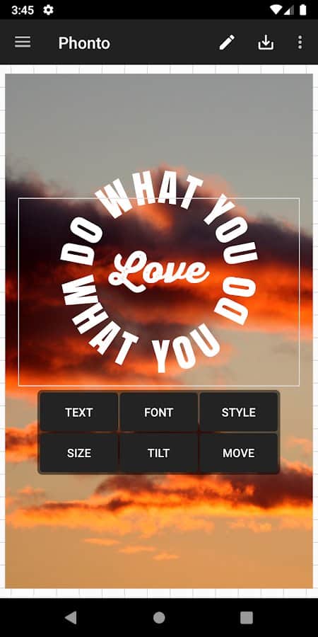 Phonto - Fotoğraflarda Metin - Fotoğraflara metin eklemek için gerekli yazı tiplerini indirmenize gerek yok, sadece düzenlemek için bir görüntü seçin, istediğiniz metni yazın, yerleştirin ve ardından uygulamadan doğrudan cihaza indirerek güzel bir yazı tipi seçin. Eğer uygulama içinde beğendiğiniz bir yazı tipi bulamazsanız, onu zip, ttf veya otf formatında içe aktarabilirsiniz. Boyut, renk, eğim açısı, harfler arası mesafe ve satır aralığı doğru ayarlandığında, istediğiniz sonucu kesinlikle elde edeceksiniz.