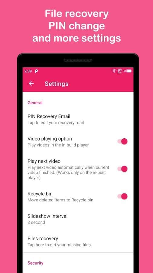 Foto kilidi ve Video Kilidi - Tüm gerekli fotoğrafları, ekran görüntülerini ve videoları ayrı bir klasöre yerleştirerek, onları gereksiz gözlerden korumak ve gizli hale getirmek için kullanın. Uygulamanın tüm mevcut işlevleri otomatik olarak galerinizle entegre olacak, bu nedenle uygulama içinde herhangi bir şey yapmanıza gerek kalmayacak; sadece taşımak istediğiniz dosyayı seçmeniz ve güvenilir bir şifre, grafik anahtar veya parmak izi belirlemeniz yeterli. Bu klasörde herhangi bir dosyayı silseniz bile, yine de çöp kutusunda görünecektir, bu nedenle gizlilik ve depolama kalitesi konusunda endişelenmenize gerek yok.