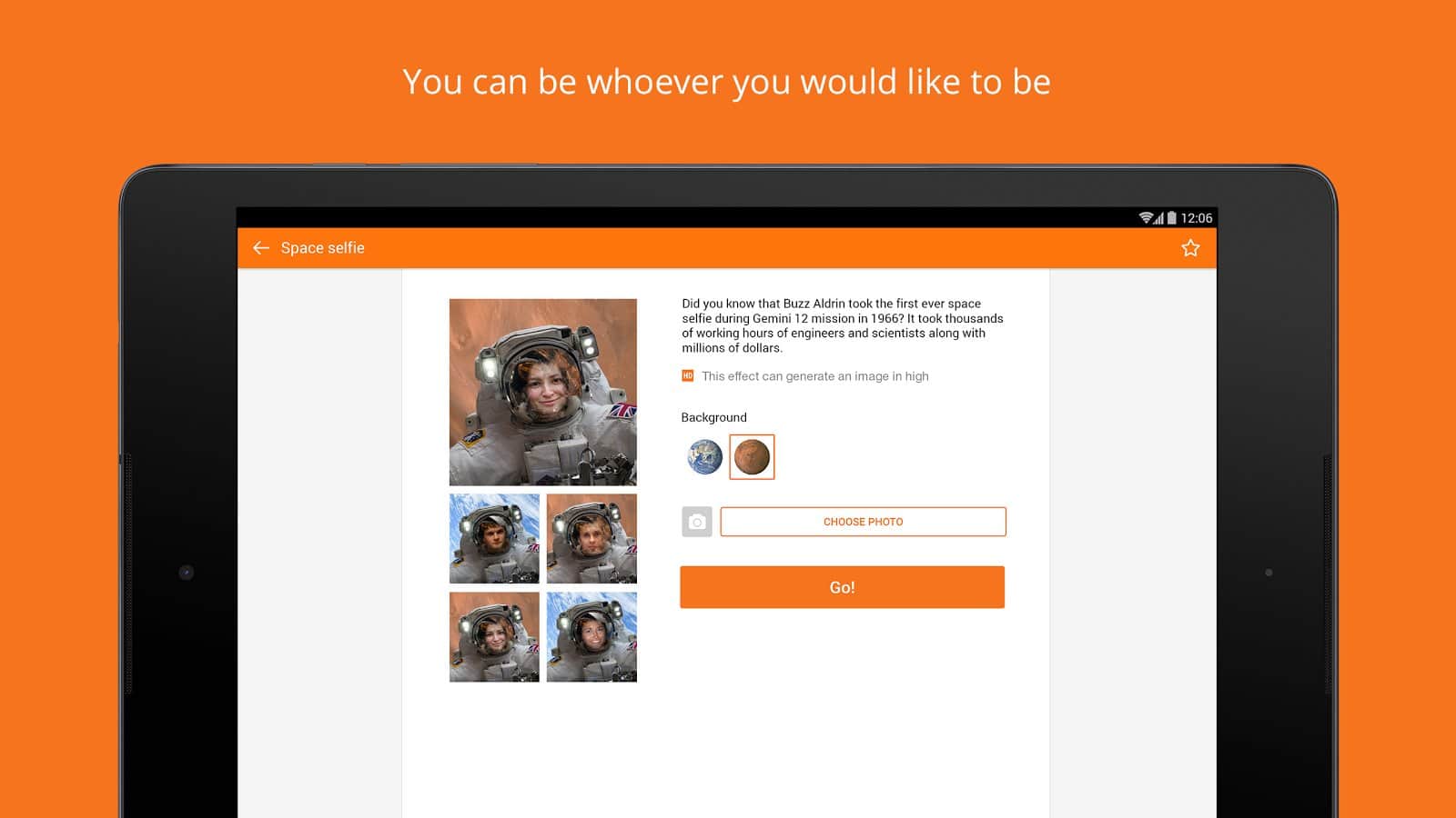 PhotoFunia - Android cihazlarda fotoğraflarla deney yapmaya devam ediyoruz. Capsule Digital geliştiricisinden dikkatinize sunduğumuz eğlenceli program sayesinde, fotoğraflarınıza burada 300'den fazla çeşit içerik bulunan çeşitli efektler ekleyebilirsiniz. Böylece arkadaşınız, Mona Lisa'nın tablosunda yer alabilir veya fotoğrafı popüler bir derginin kapağında yayınlanabilir. Deneyin. Deney yapın ve sonuçların tadını çıkarın!