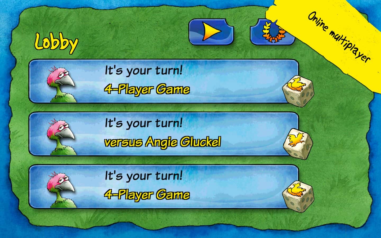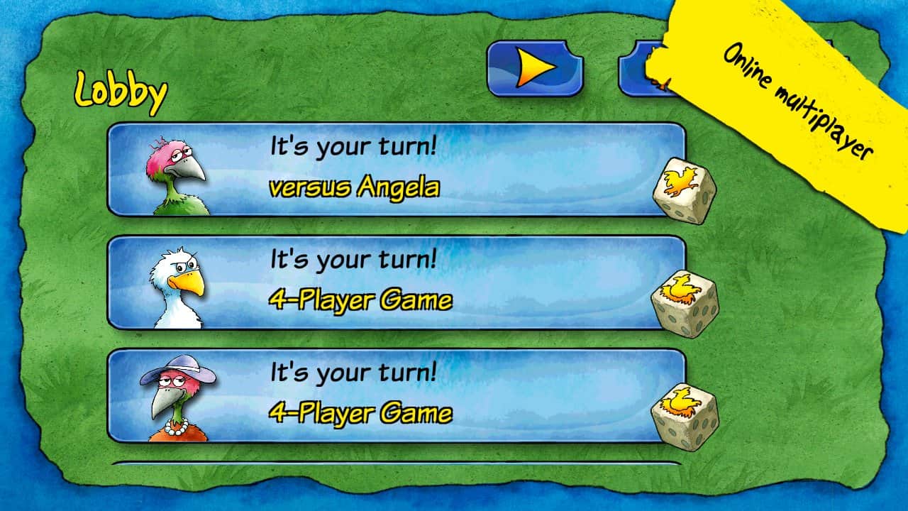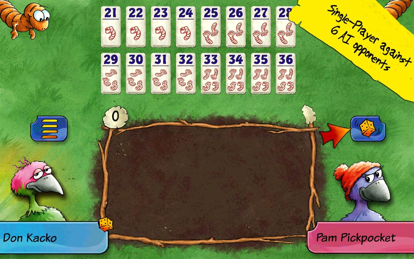 Reiner Knizia'nın Pickomino'su - Izgara üzerinde pişirilmiş solucanlar büyük talep görüyor ve sadece en hızlı tavuk lezzetli atıştırmalıkları kazanabilir. Ama her zaman dikkatli olmalısınız, çünkü en yavaş tavuk ızgaradan bir solucanı kapmakta geç kalırsa sizi de tabaktan alabilir! Arkadaşlarınızla büyük bir grup olarak, birbirinize karşı veya sadece cihazınıza karşı oynayın.
