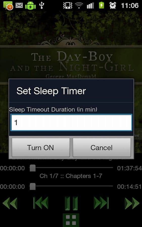 - Uyku zamanlayıcısı, kullanıcının bu menüden bir zamanlayıcı ayarlamasına olanak tanır, böylece oynatmayı otomatik olarak durdurur