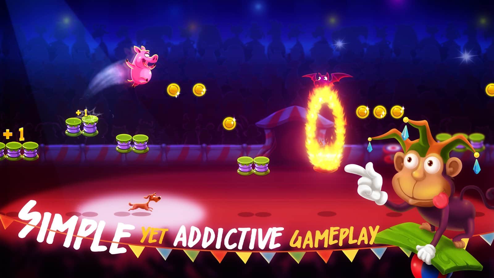 Domuz Şovu - zıplama oyunu ve arcade platform oyununu bir araya getiren eğlenceli bir oyun. Bu projenin baş karakteri, bir sirk gösterisinin yıldızı olmayı hayal eden eğlenceli ve sevimli bir domuzcuk. Bunun için birçok zorluğu geçerek çalışması gerekecek. Oyun mekaniği oldukça basit; domuzcuğu dokunarak kontrol ederek, onun tüm platformlarda zıplamasına yardımcı olmak ve engellerden kaçınarak ödülleri toplamak sizin göreviniz. Piggy Show'un mekanikleri elbette yeni değil, ancak mükemmel renkli grafikler, harika ses efektleri, basit ama yine de bir hikaye, basit kontroller ve eğlenceli karakterler ile bir araya getirildiğinde oyunun tüm eksikliklerini telafi ediyor.
