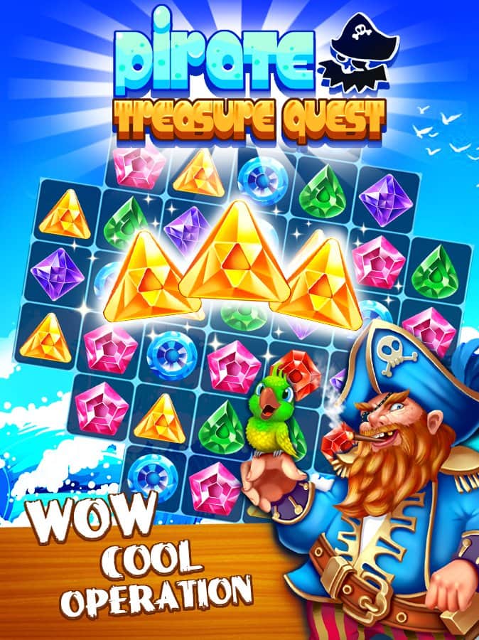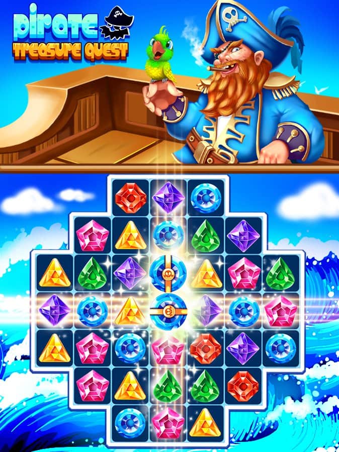 Korsan Hazine Macerası – Android için bir üçlü eşleştirme oyunudur, burada bir korsanla birlikte hazine arayacaksınız. Bu oyunda sizi birçok macera ve keşif bekliyor, farklı adalarda seyahat edecek ve korsan hazinelerini arayacaksınız. Renkli değerli taşlardan oluşan diziler oluşturun ve patlatın, böylece diğer taşlar için yer açın. Taşlardan olabildiğince uzun diziler oluşturmayı hedefleyin ve harika bonuslar ve güçlendirmeler kazanın. Yeni adaları keşfedin ve seviyeleri hızlı geçmek için eski eserleri kullanın. Oyunda iki oyun modu, birçok farklı seviye ve güçlendirme bulunmaktadır.